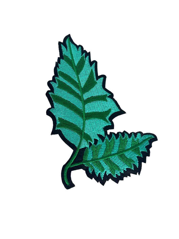 Embroidered Patch Featuring Two Overlapping Teal-Toned Mint Leaves