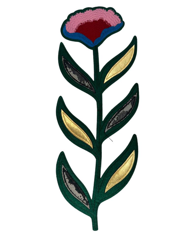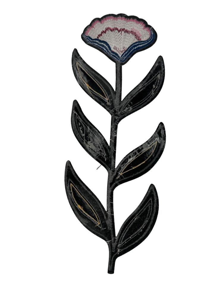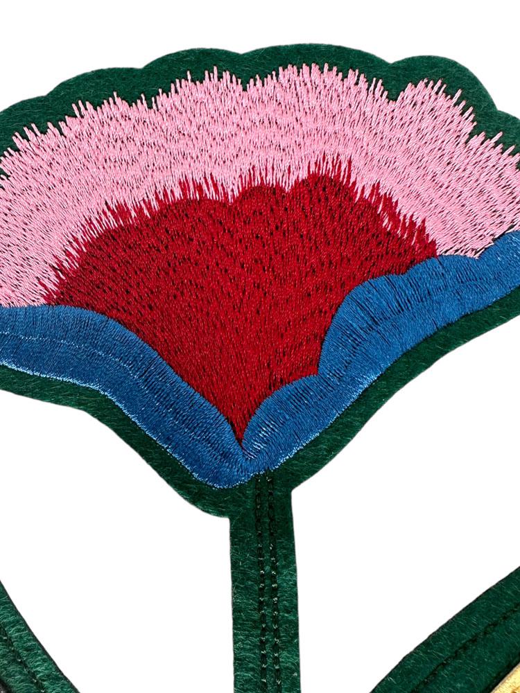 Embroidered Patch Featuring a Stylized Tulip Flower with Geometric Leaves