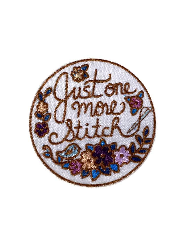 Celebrate your love for crafting with the Just One More Stitch Patch, a charming round embroidered badge that perfectly captures the never-ending joy (and slight obsession) of the creative process. With elegant script text surrounded by needles, thread, flowers, and hearts, this patch is a warm tribute to makers everywhere.