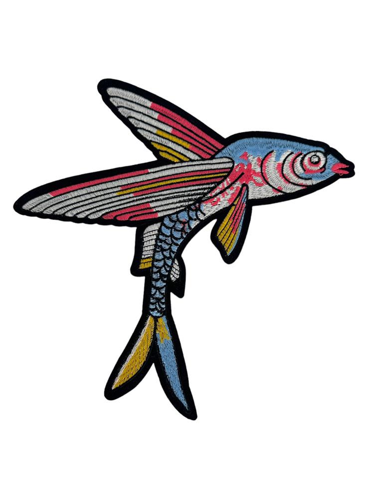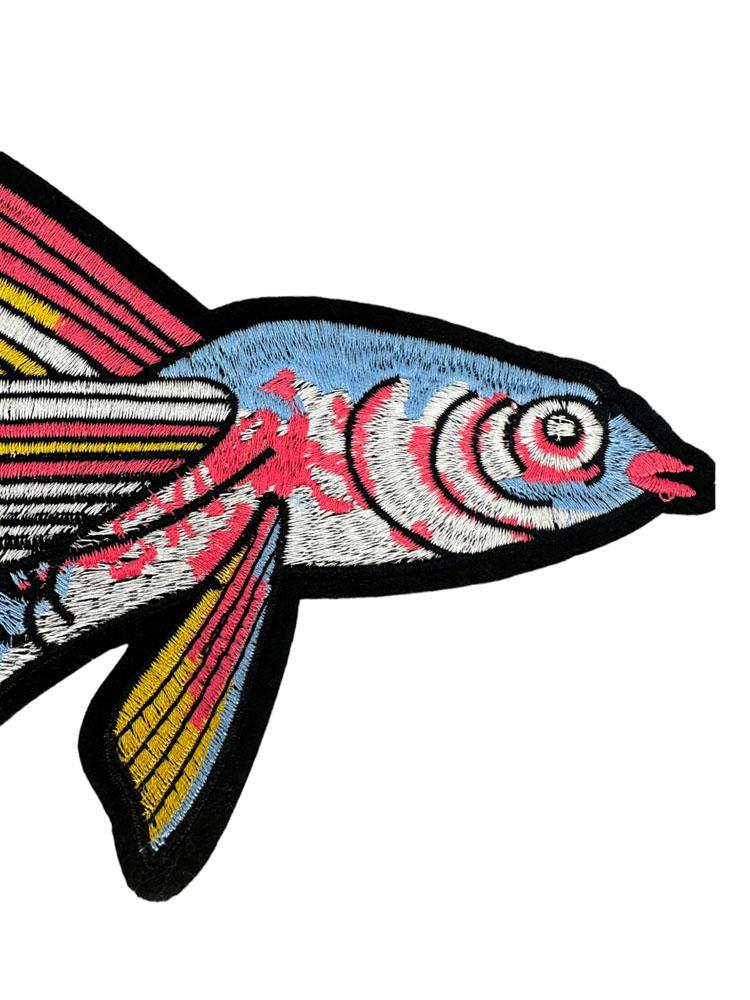 Embroidered Patch Featuring a Multicolored Flying Fish in Mid-Flight