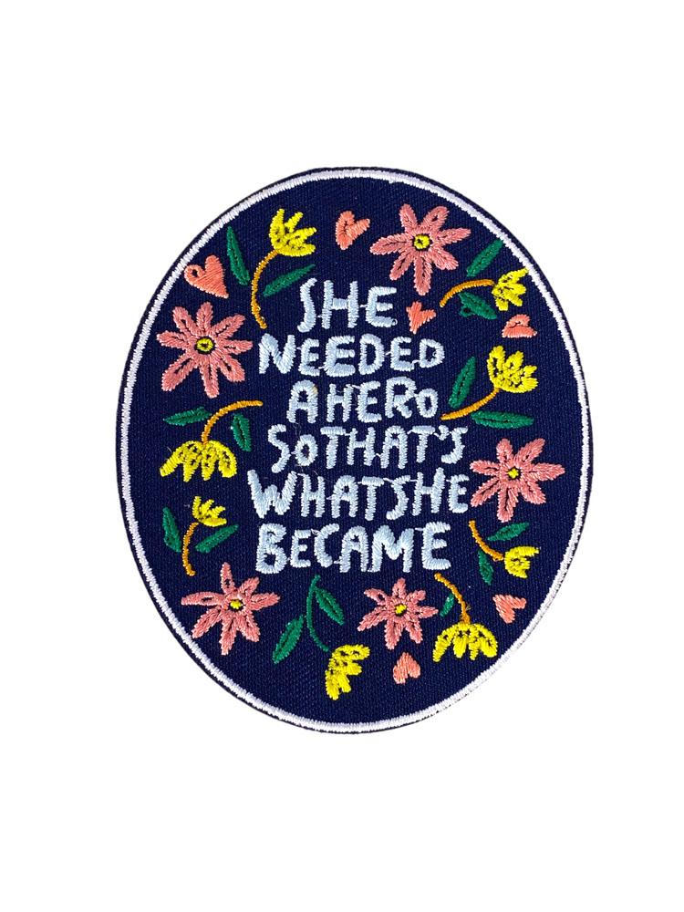 She Became Her Own Hero Patch – Strength in Stitches, Power in Bloom