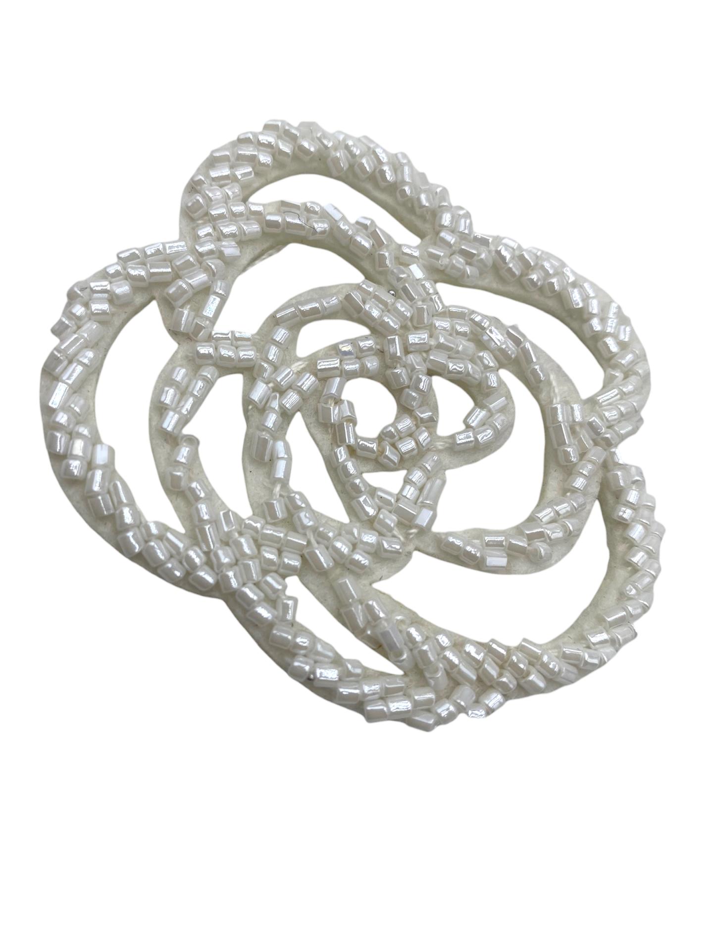 Add a touch of timeless sophistication with the Crystal Rose Patch, a radiant embroidered design shaped like a delicate rose in full bloom. Outlined with shimmering silver thread and encrusted with a glitter-like finish, this patch brings high-glam elegance to any garment or accessory.