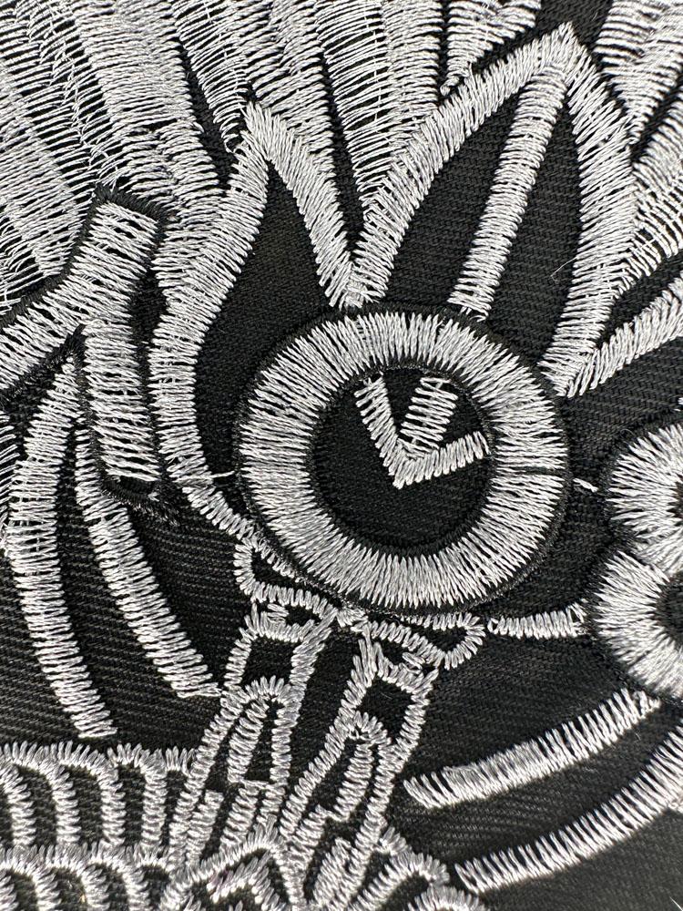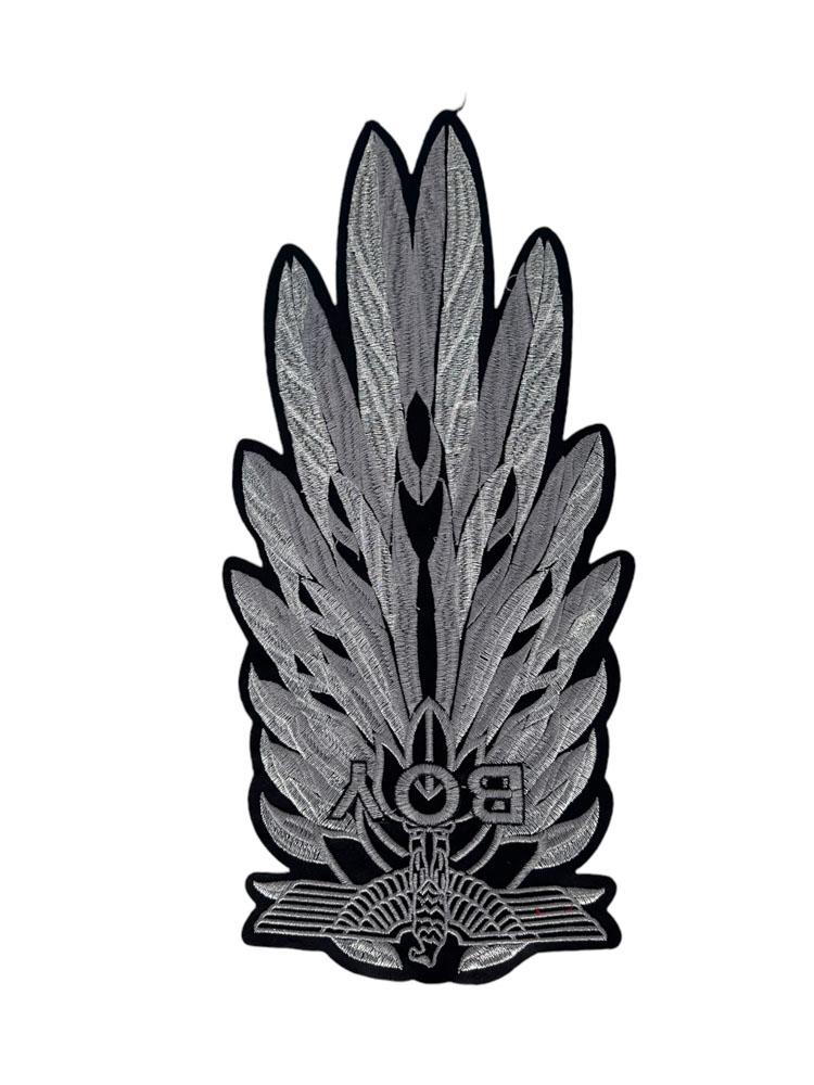 Embroidered Patch Featuring a Stylized Single Wing in Silver and White