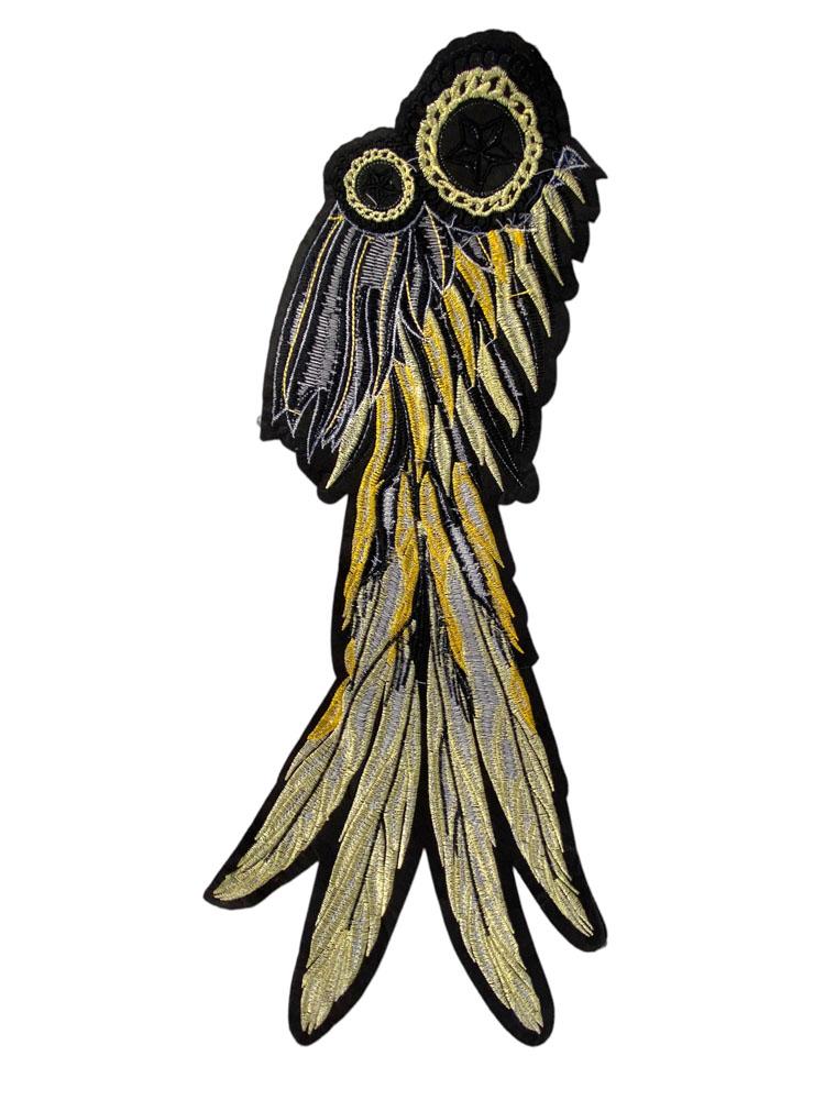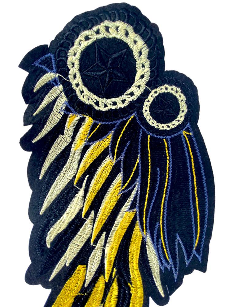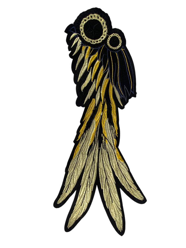 Embroidered Patch Featuring a Stylized Left Wing in Black and Gold