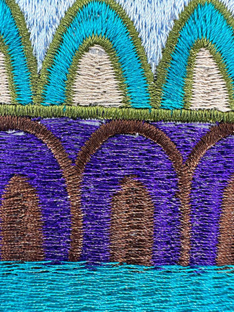 Premium embroidery thread on a structured iron-on/sewable twill base