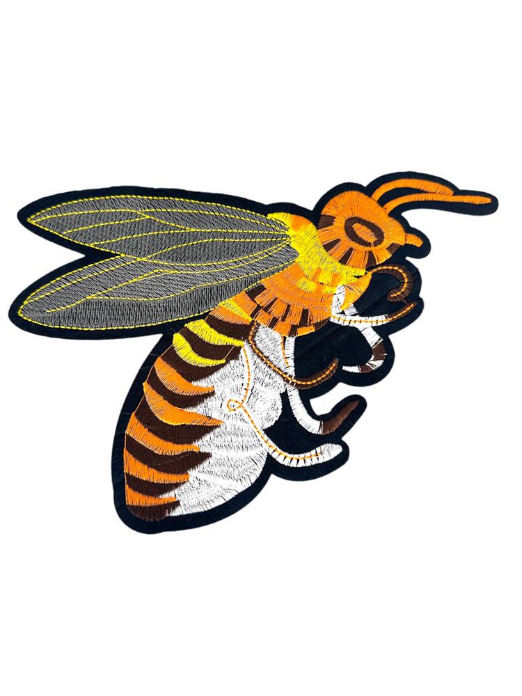 Embroidered Patch Featuring a Bold Yellow Wasp in Flight