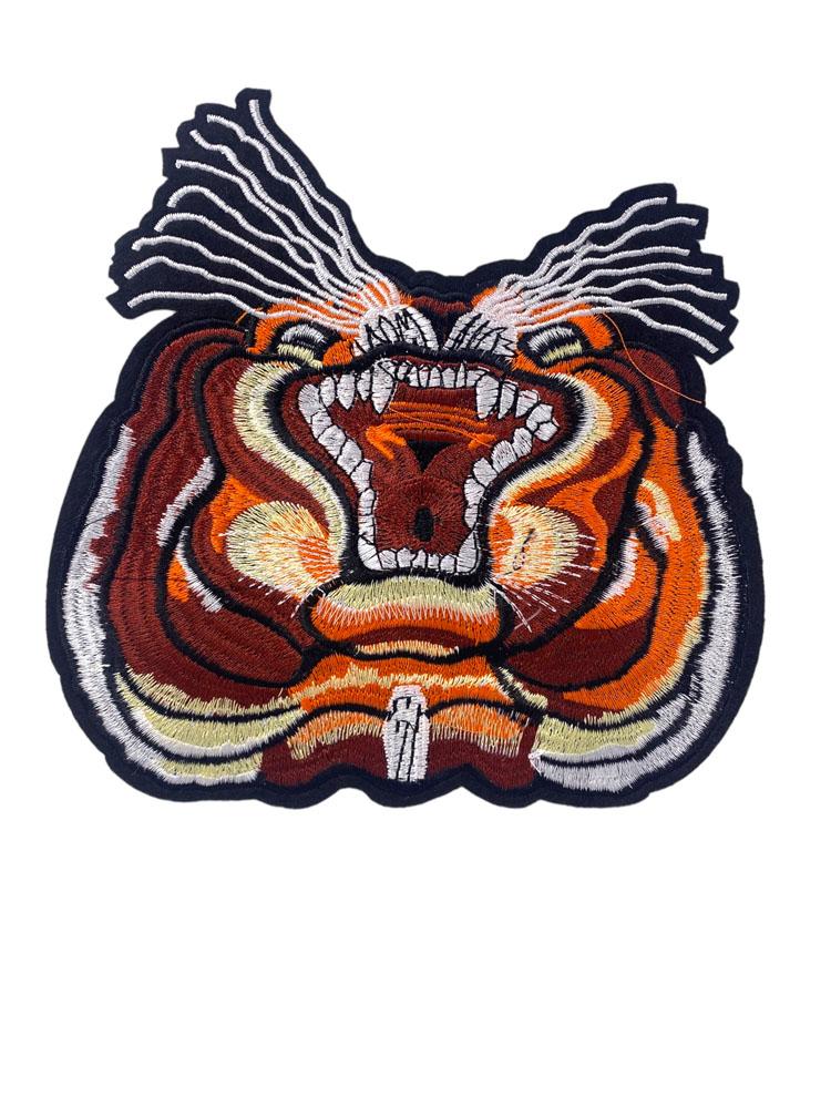 Strike with style in the Cobra Patch, a high-impact embroidered emblem showcasing a cobra mid-hiss, exposed fangs and fully flared hood. With deep tones of burnt orange, crimson, cream, and black, this patch channels raw intensity and primal warning. The radiating lines and sharp contours make it a bold centerpiece for any fierce-fit creation.