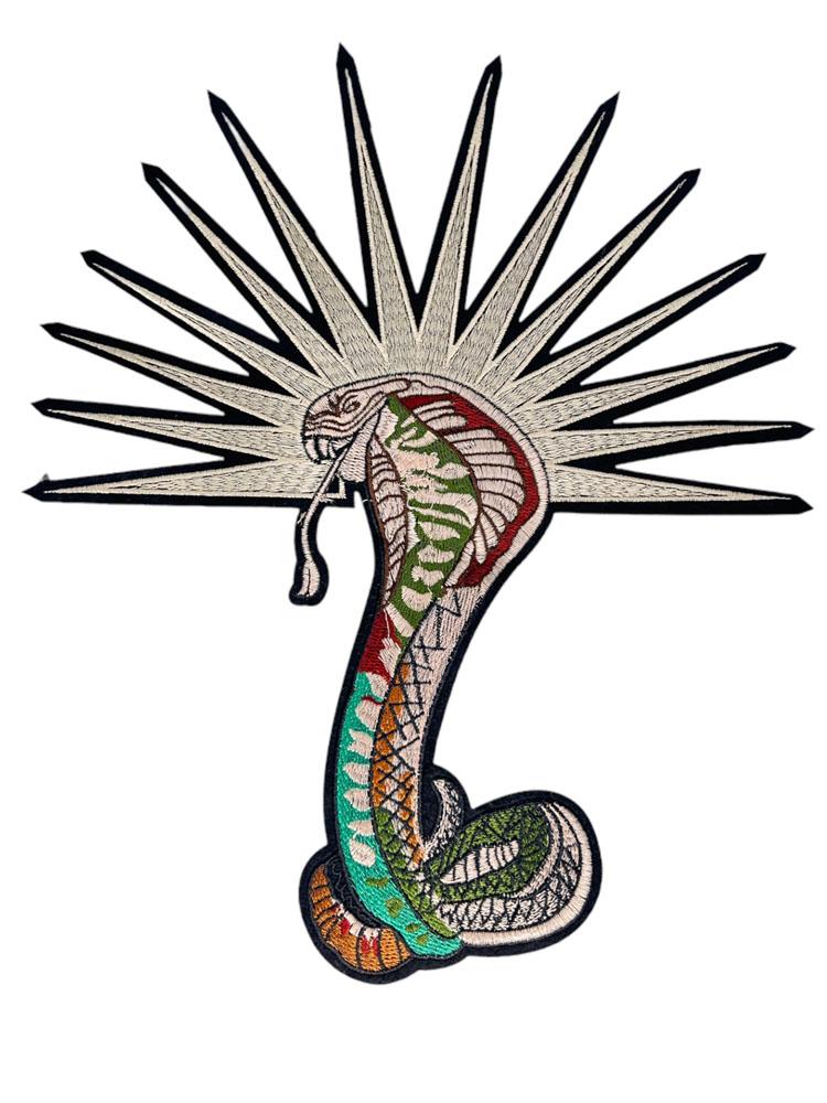 Embroidered Patch Featuring a Crowned Cobra with Sunburst Halo