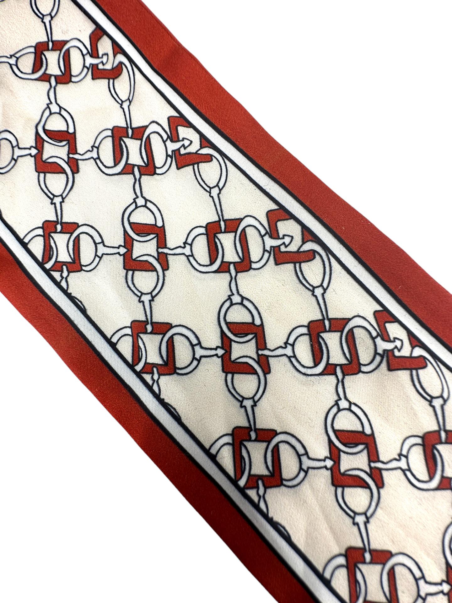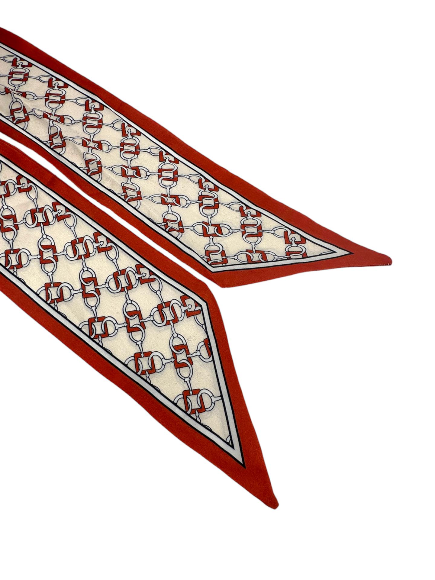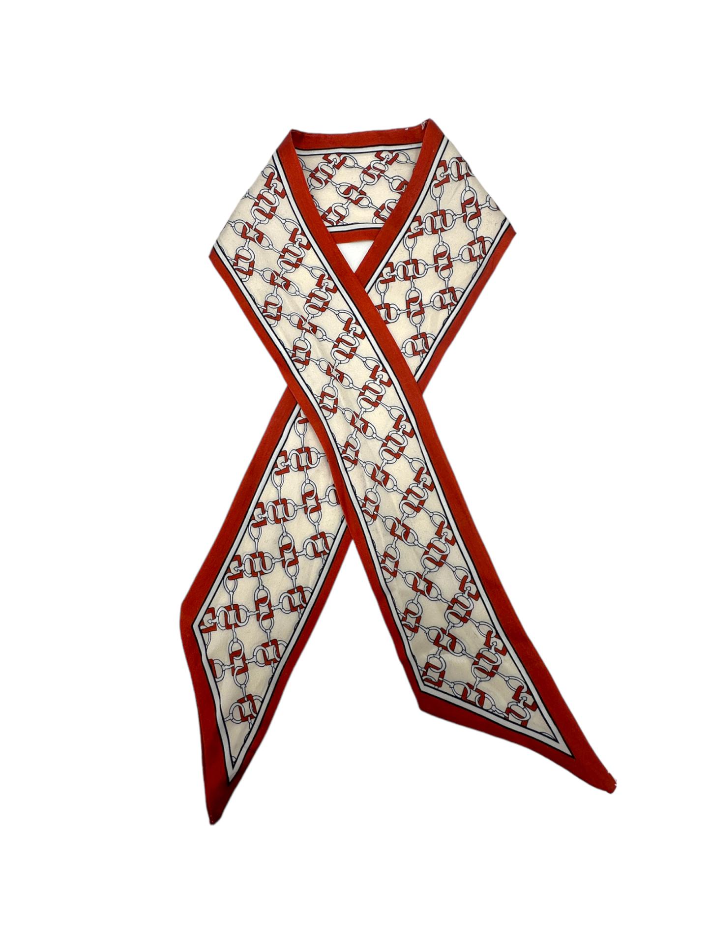 Twilly Scarf with All-Over Padlock Motif and Bold Red Border