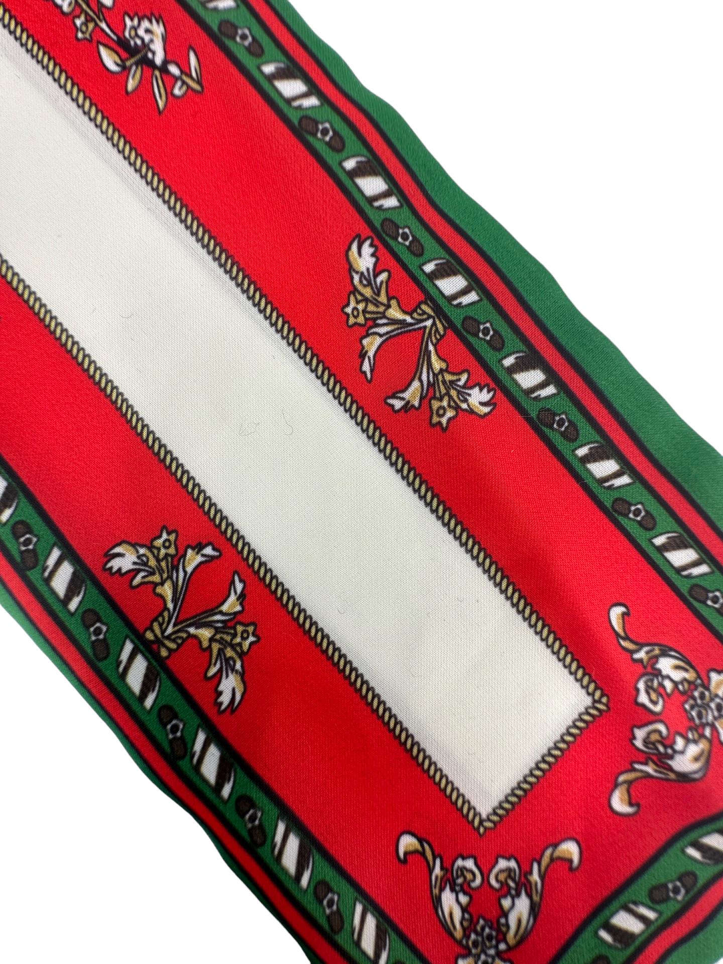 Live beautifully in the Dolce Vita Scarf, a vibrant nod to Italian glamour and carefree charm. This twilly scarf features bold tricolore stripes—green, white, and red—framed with delicate floral borders for a feminine twist on a heritage-inspired design. Whether you're channeling Riviera elegance or Milanese flair, this piece captures the spirit of “la dolce vita.”