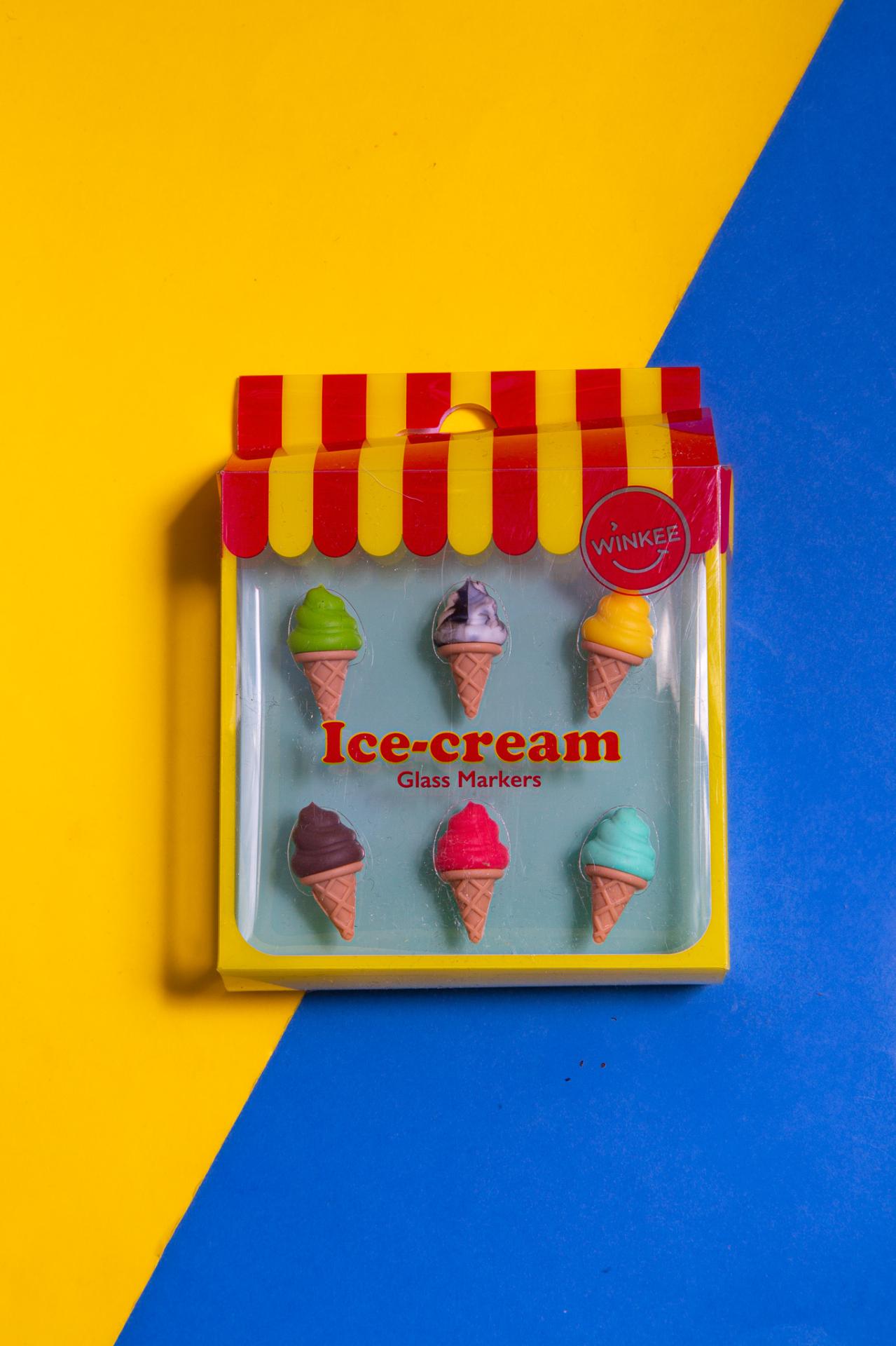 Adorable ice-cream–shaped glass markers in bright, pastel colors, perfect for sweetening any gathering and keeping drinks easy to identify.