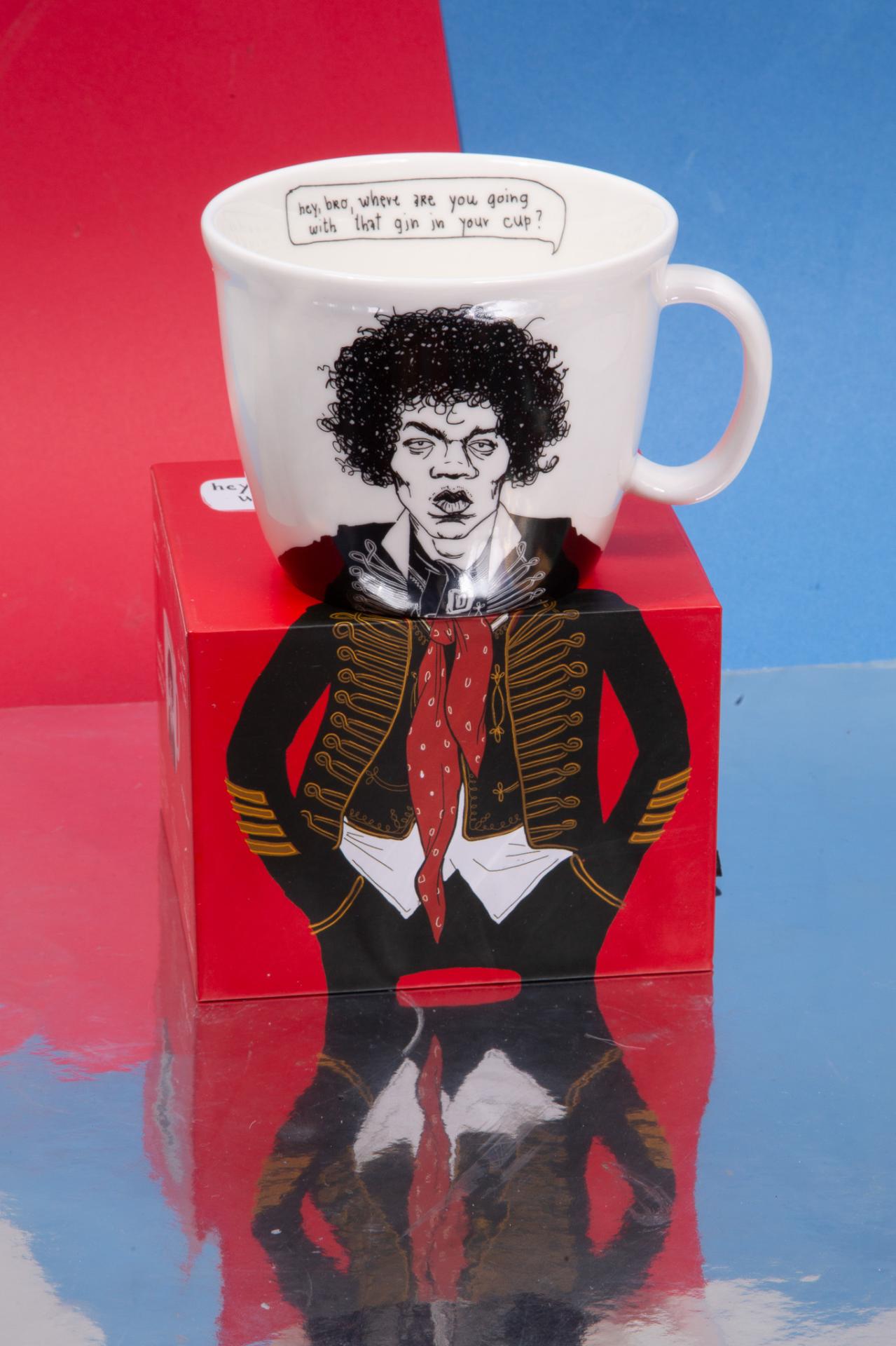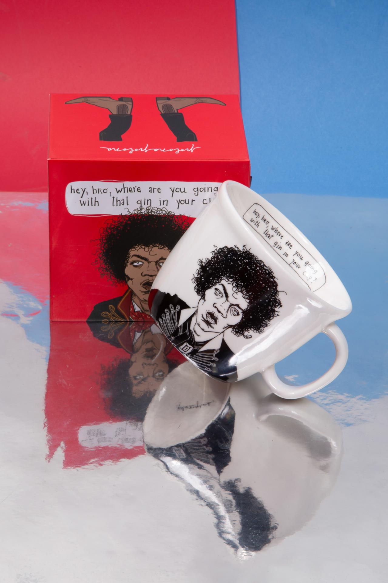 A striking illustrated mug inspired by an electric music icon, perfect for adding rock-and-roll energy to your coffee moments.