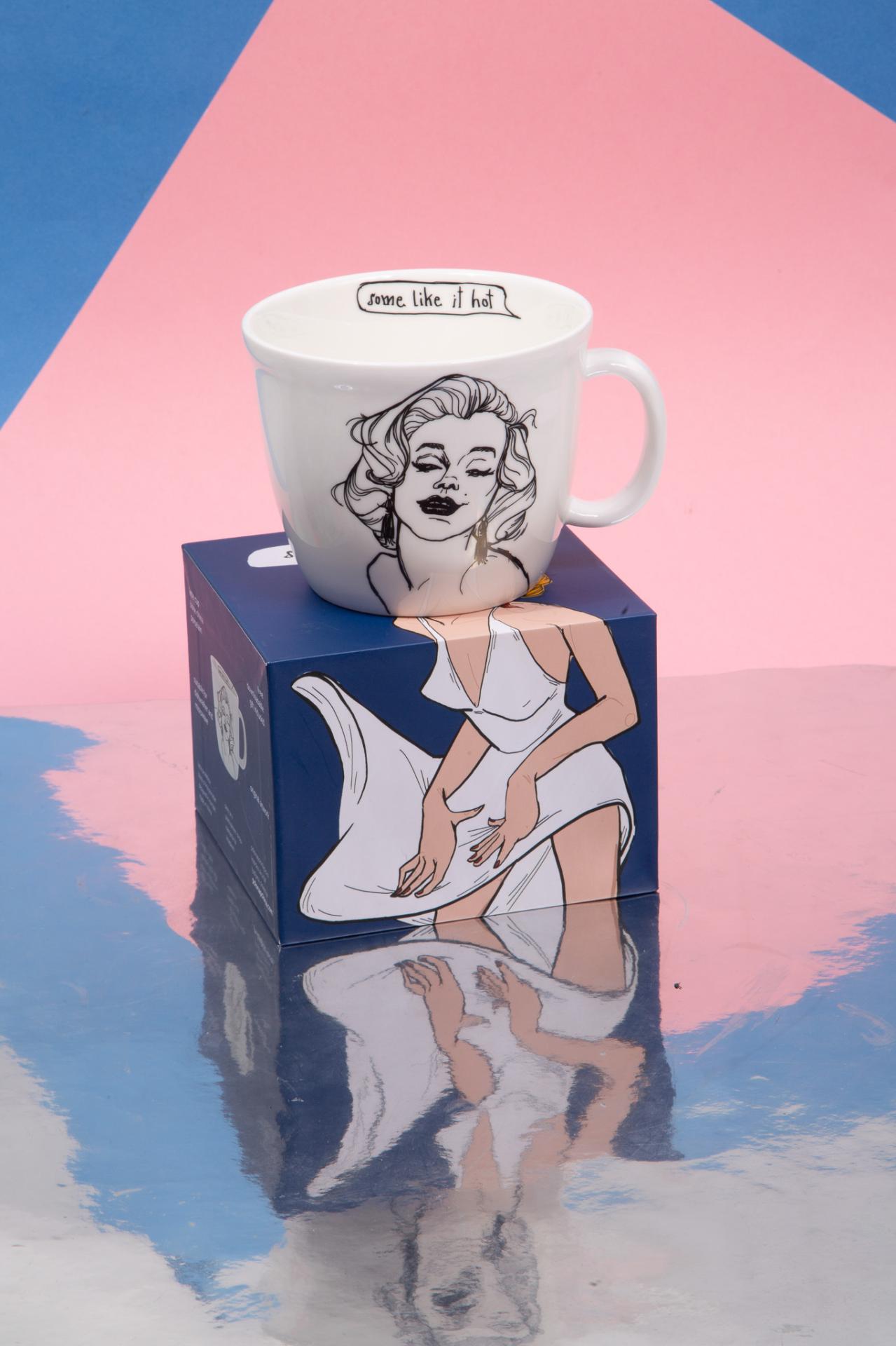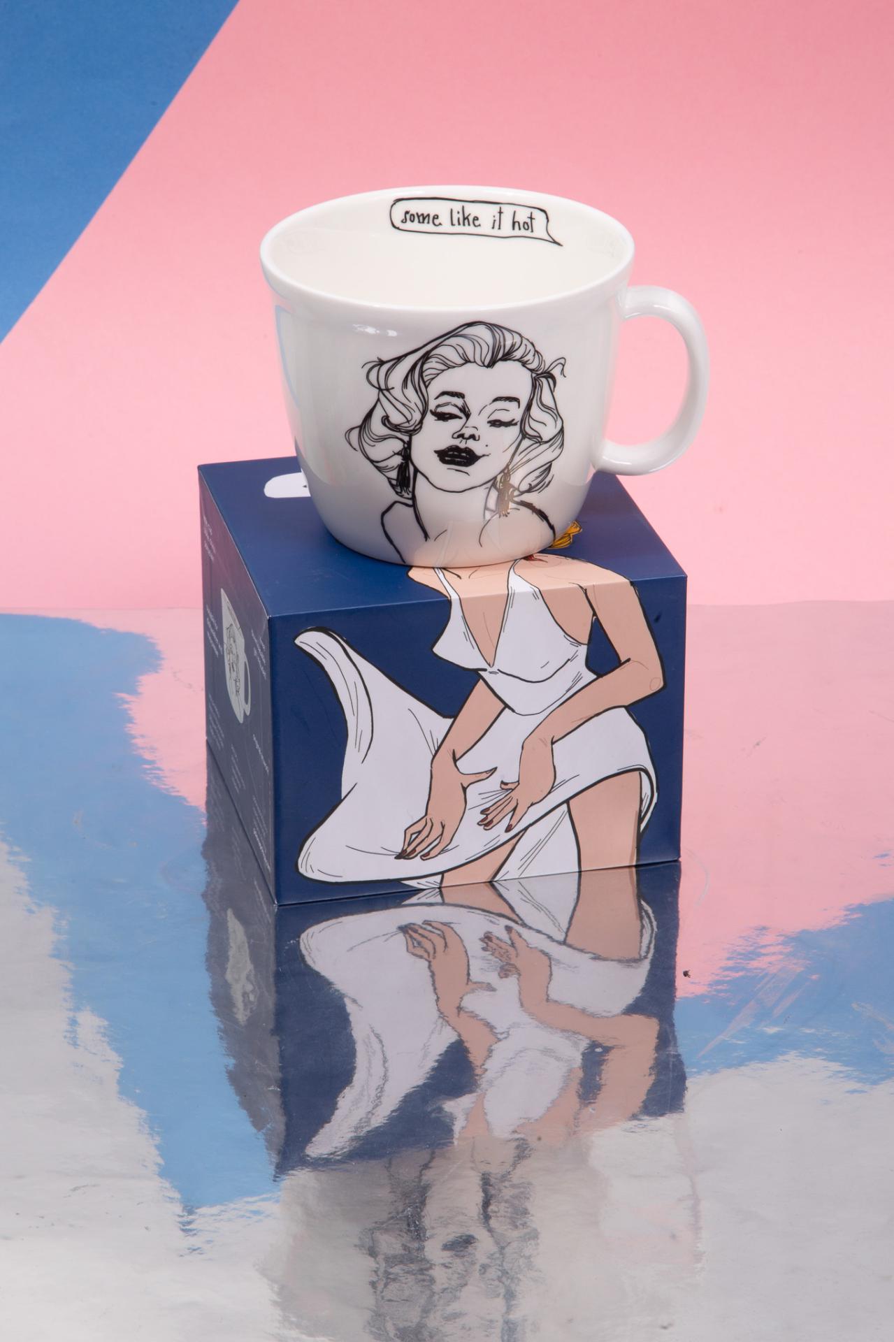 A glamorous illustrated mug inspired by an iconic Hollywood look, perfect for adding elegance and fun to your coffee moments.