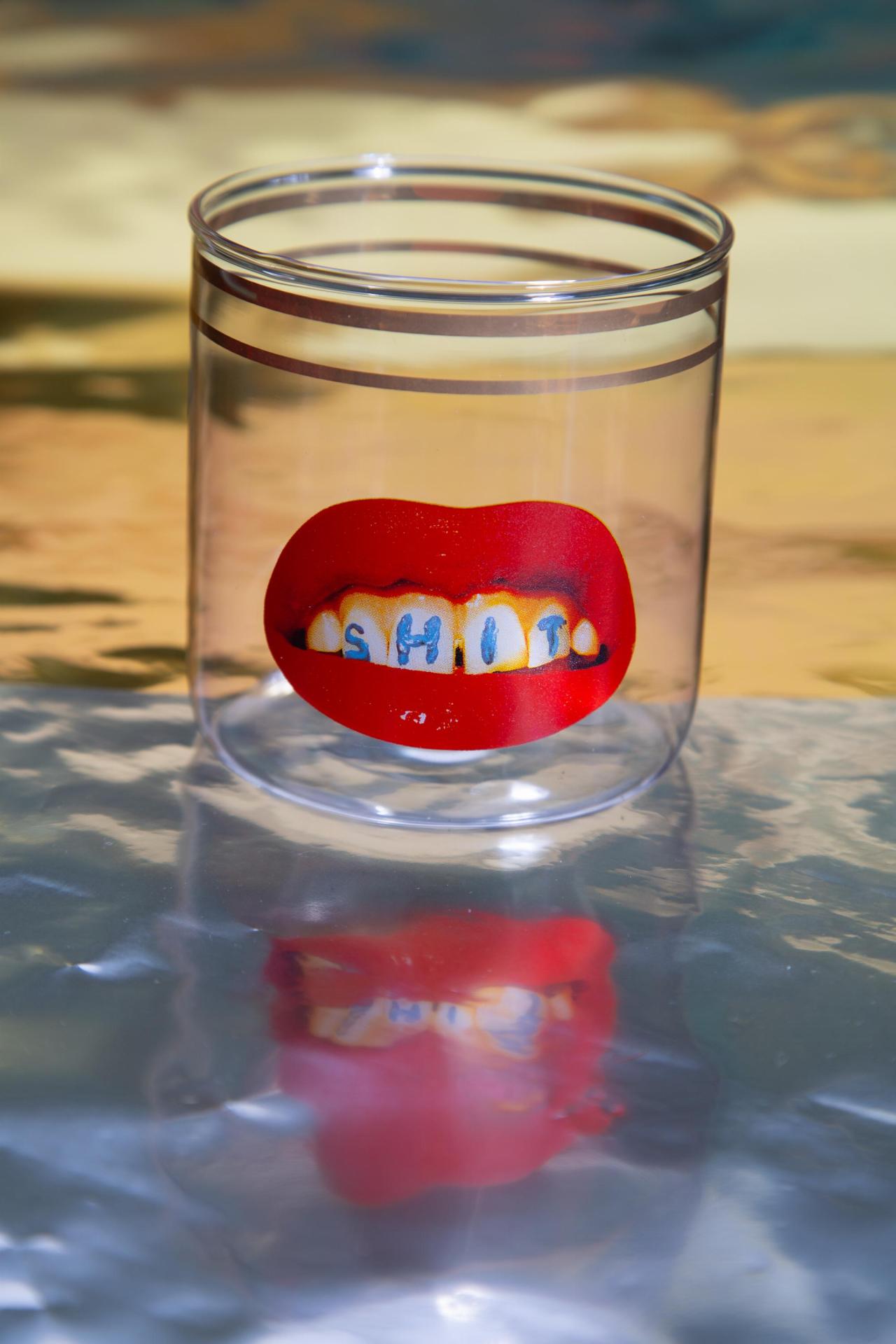 A bold clear cup featuring glossy red lips and rebellious lettering, perfect for adding attitude and humor to your drinkware.