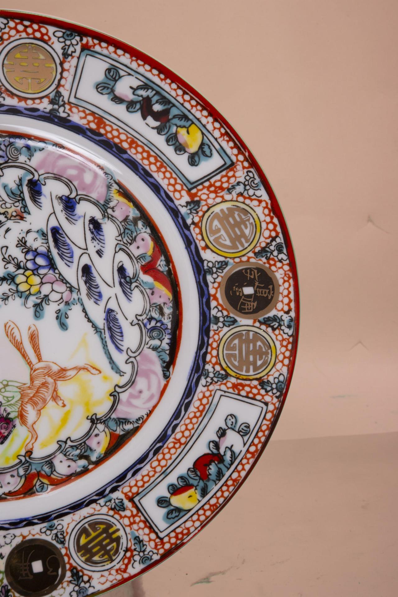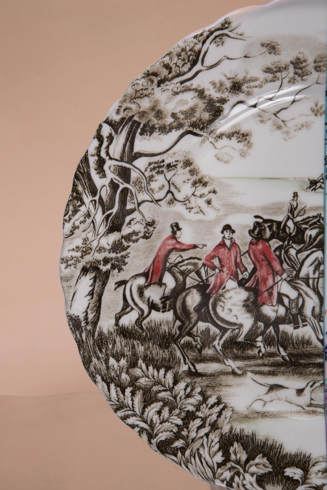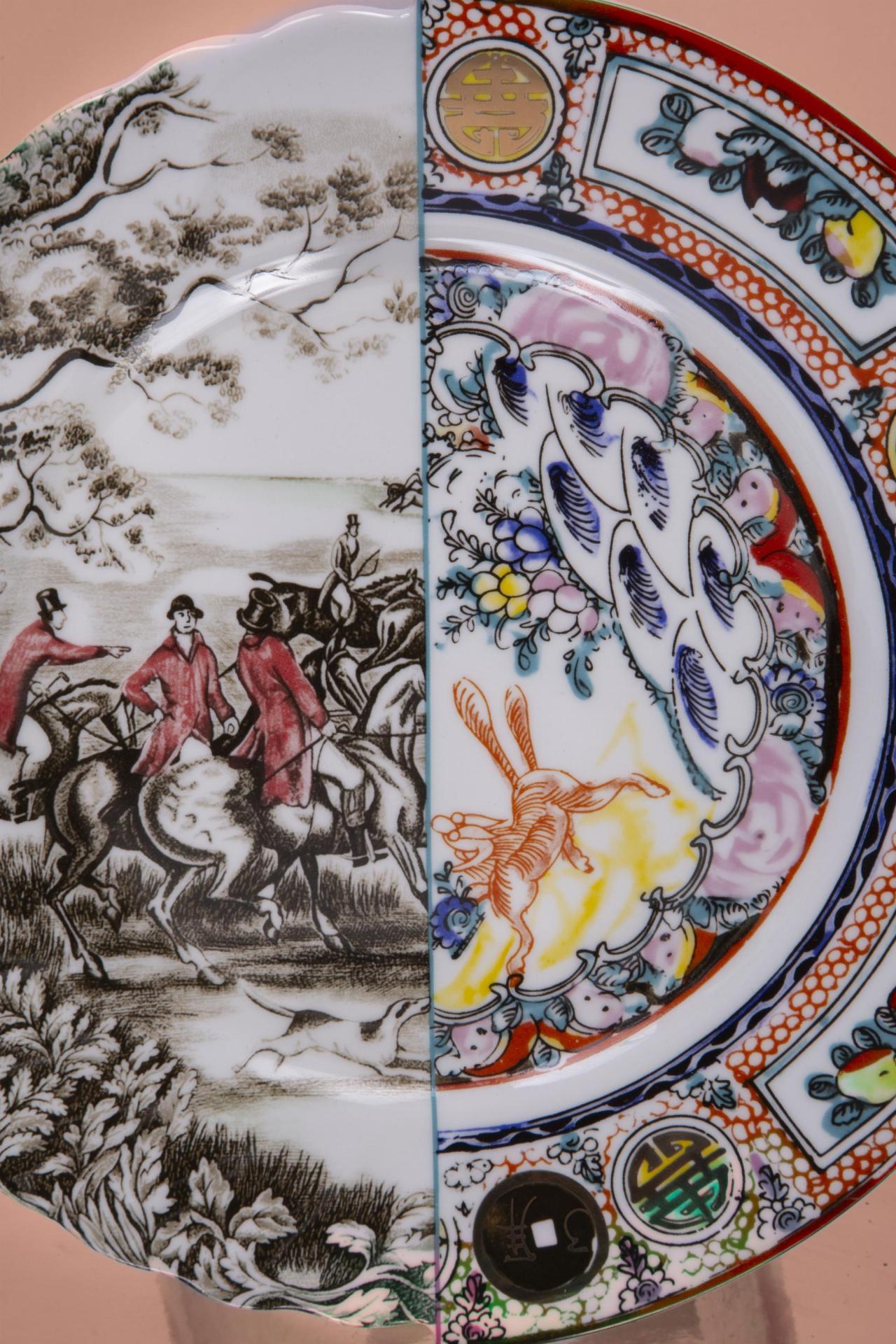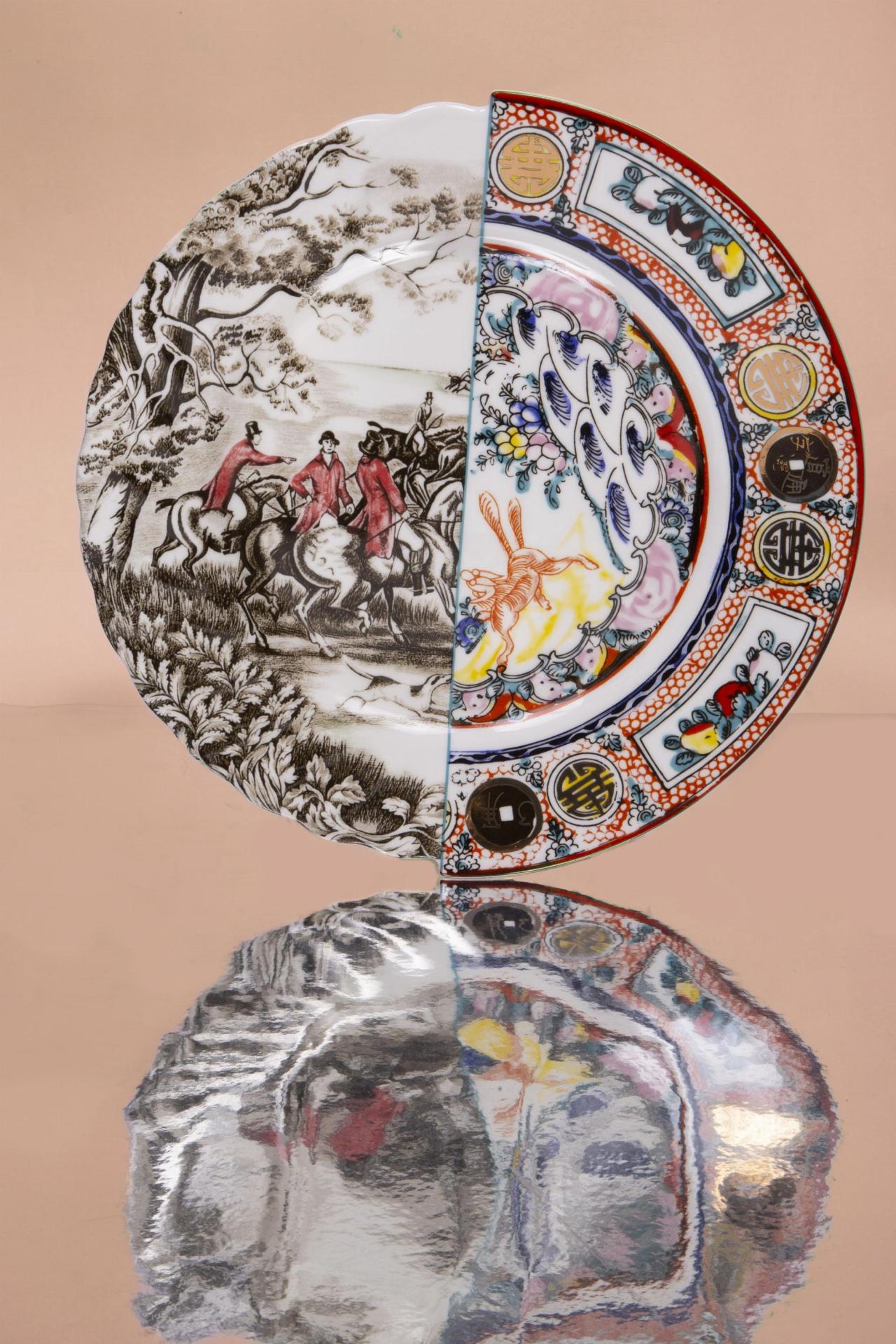 A striking ceramic dish that blends two artistic worlds in one piece, merging classical black-and-white scenery with vibrant Eastern-inspired patterns for a bold, modern statement.