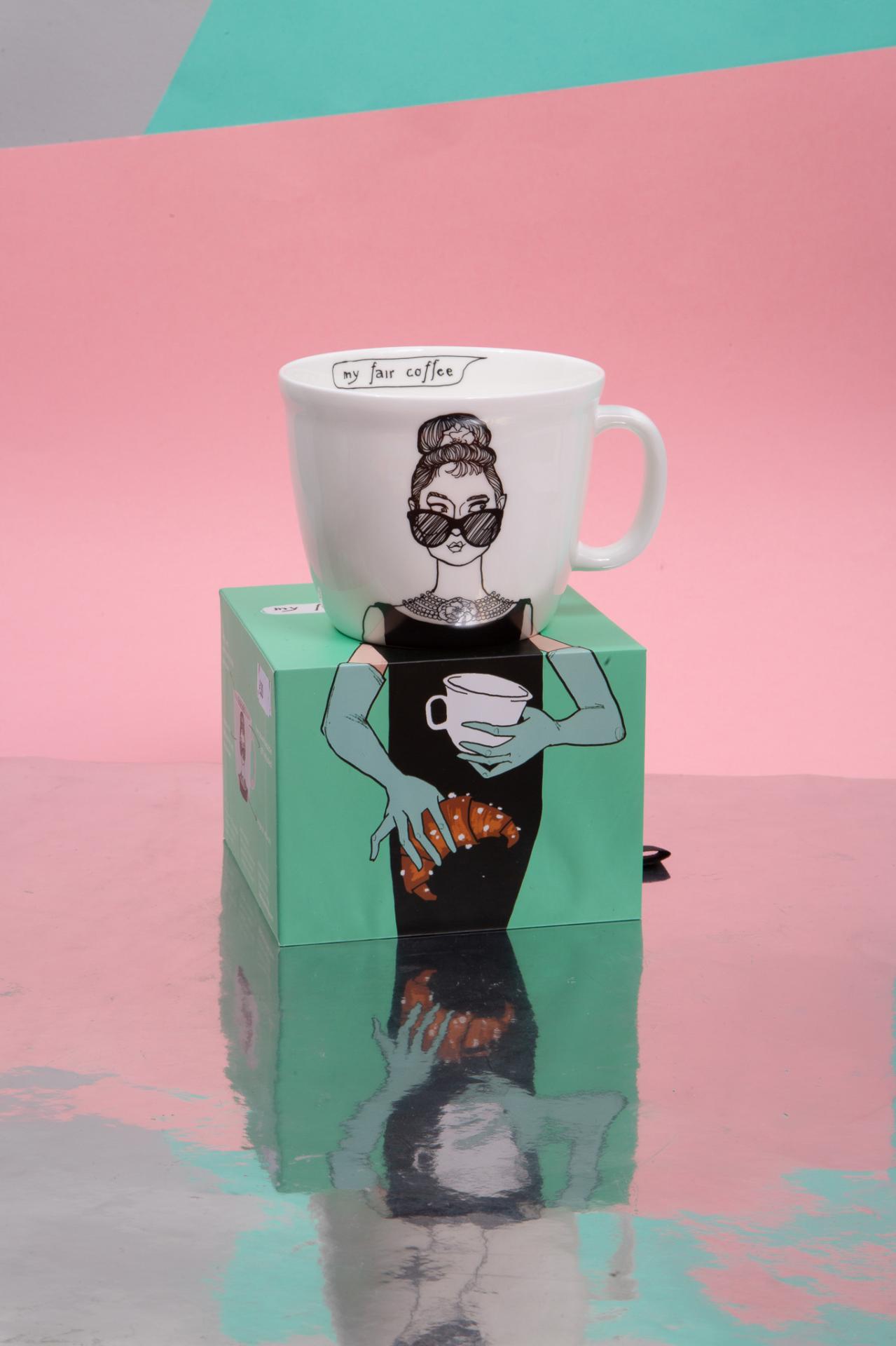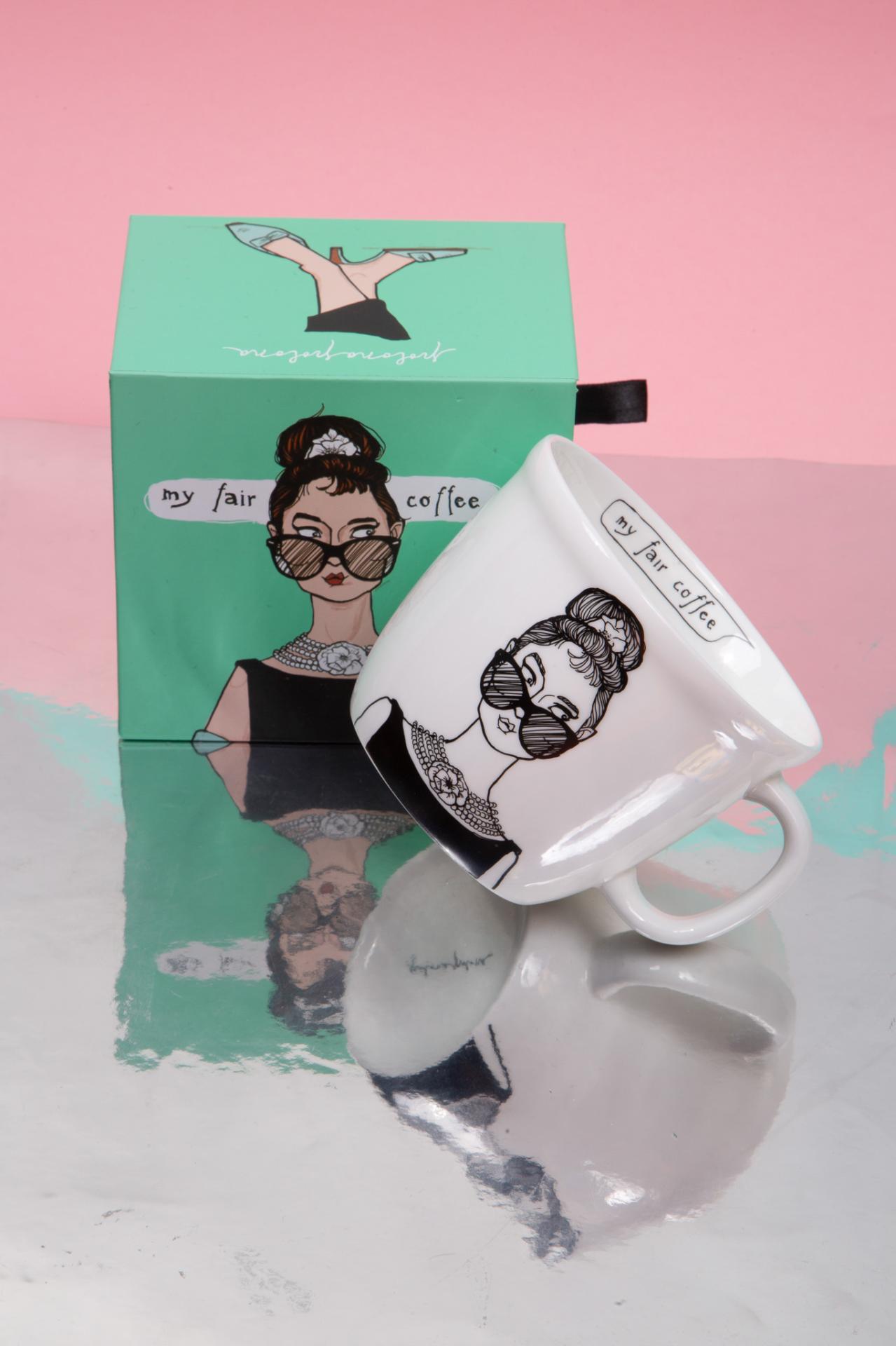 A chic illustrated mug inspired by classic elegance, perfect for coffee lovers who enjoy style with their sip.