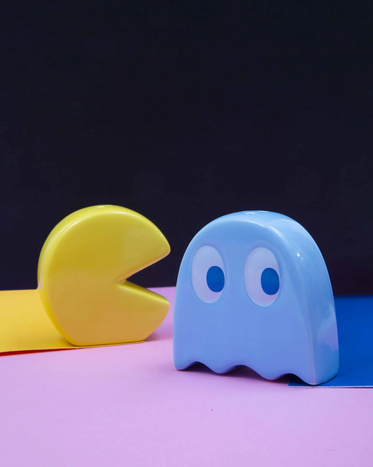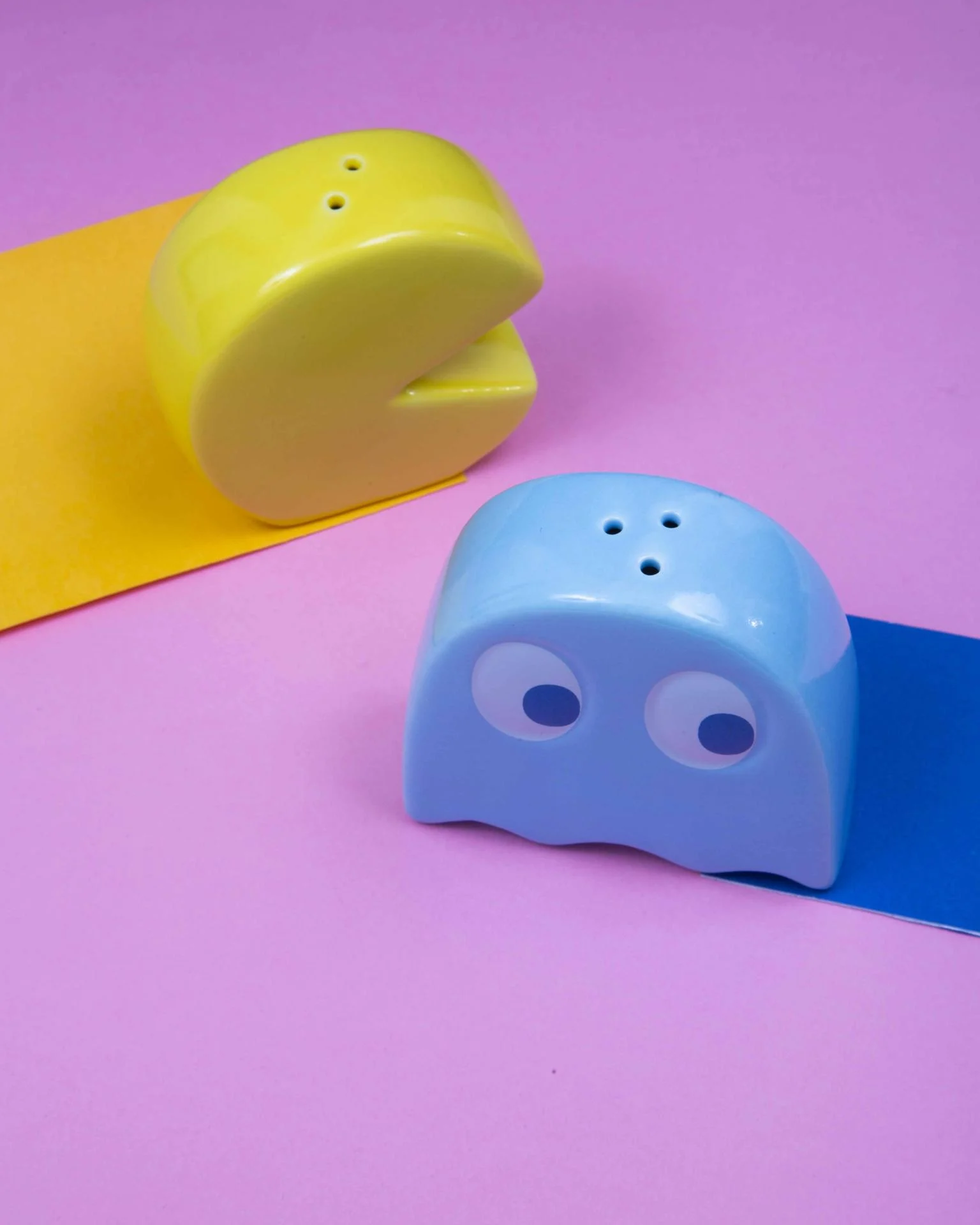 A playful salt and pepper shaker set inspired by retro arcade icons, bright, fun, and perfect for adding character to your table.
