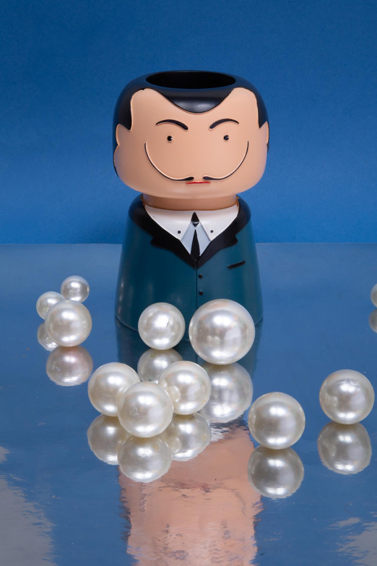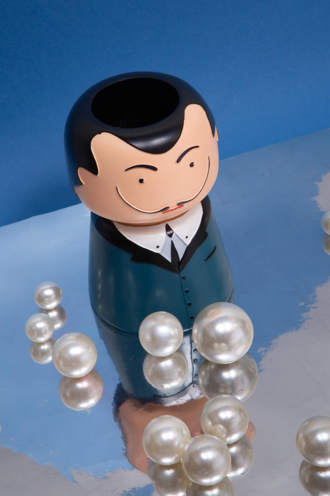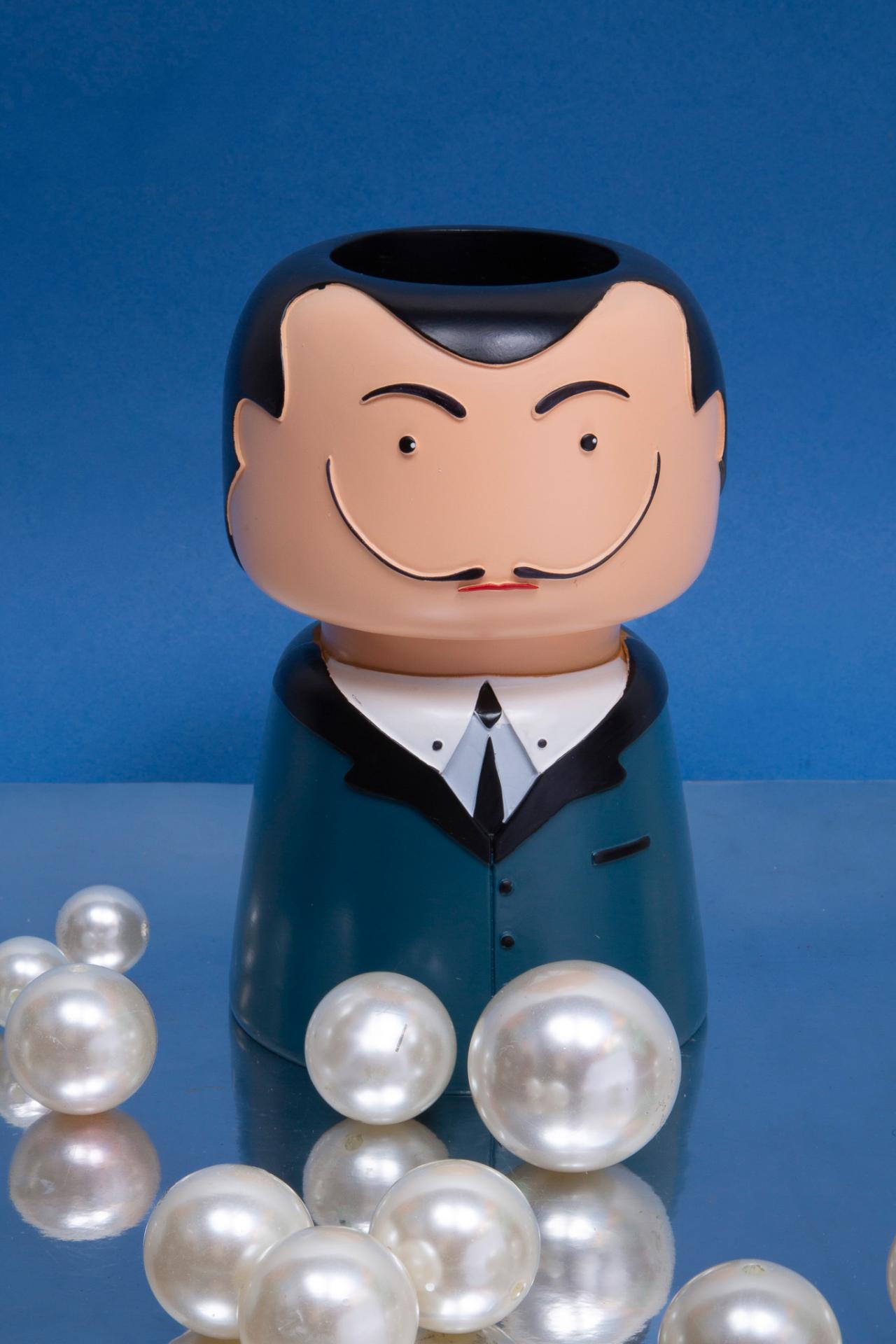 A charming ceramic figure vase styled as a gentleman with a classic mustache and sharp suit.