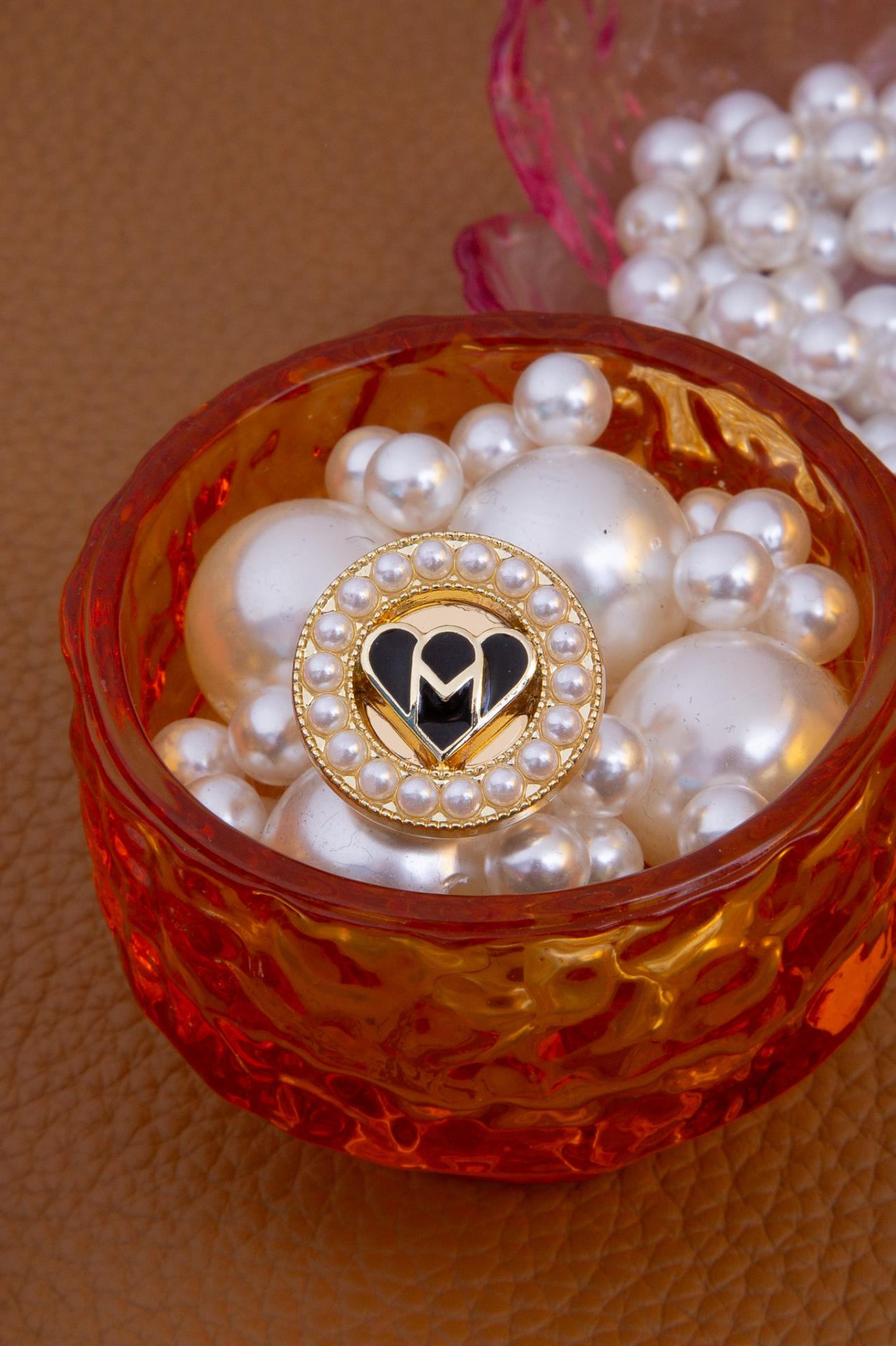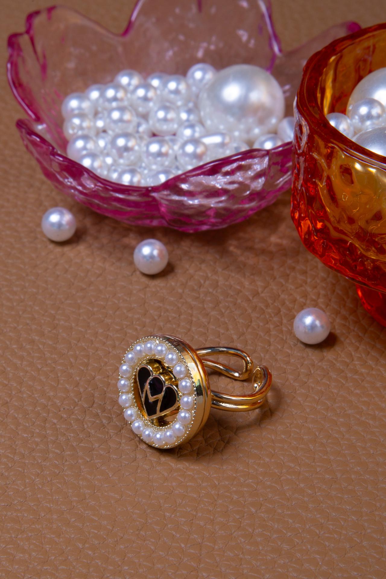 MiniMe Paris Pearl Emblem Ring, glossy black enamel, glowing pearls, and golden attitude in one signature piece.