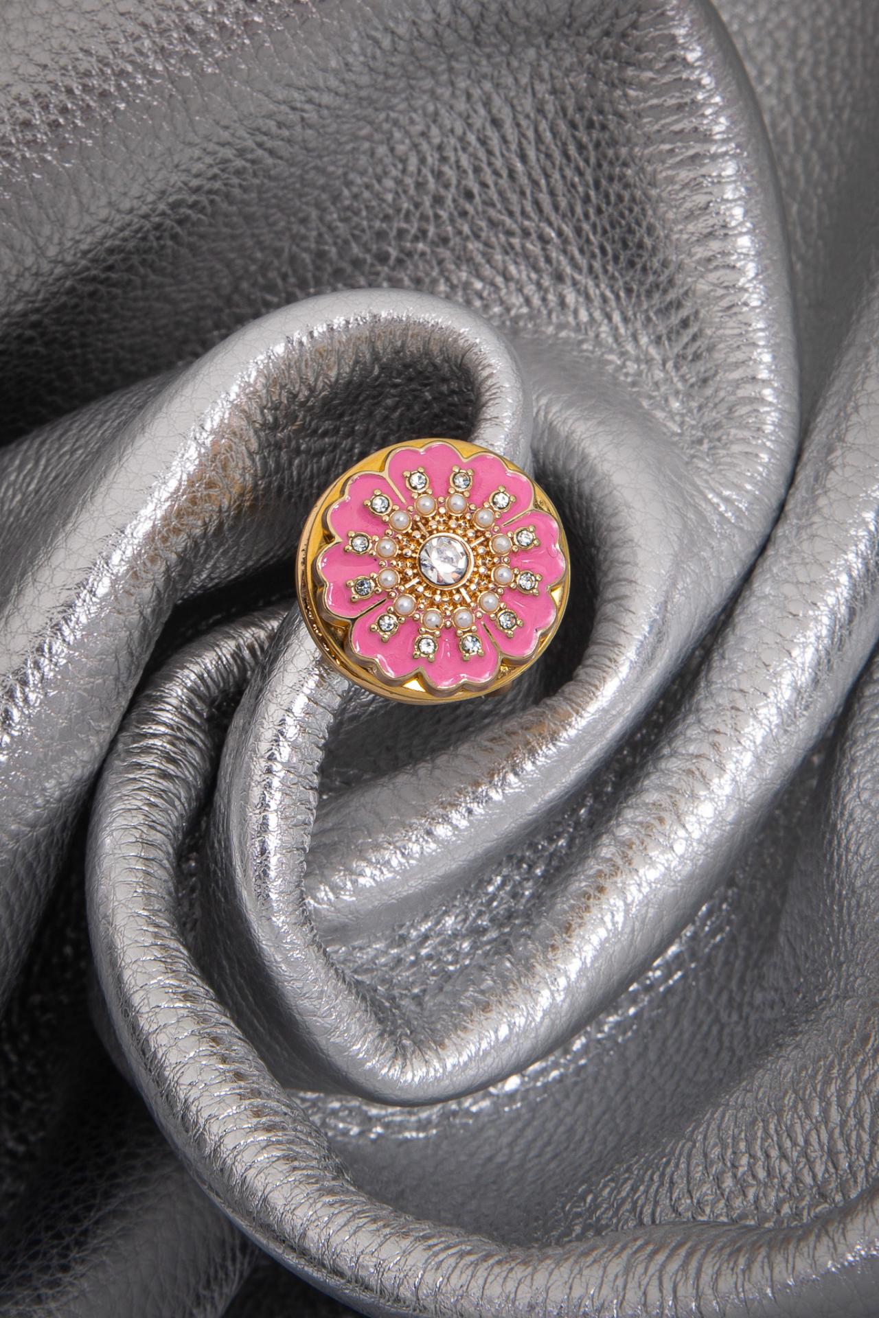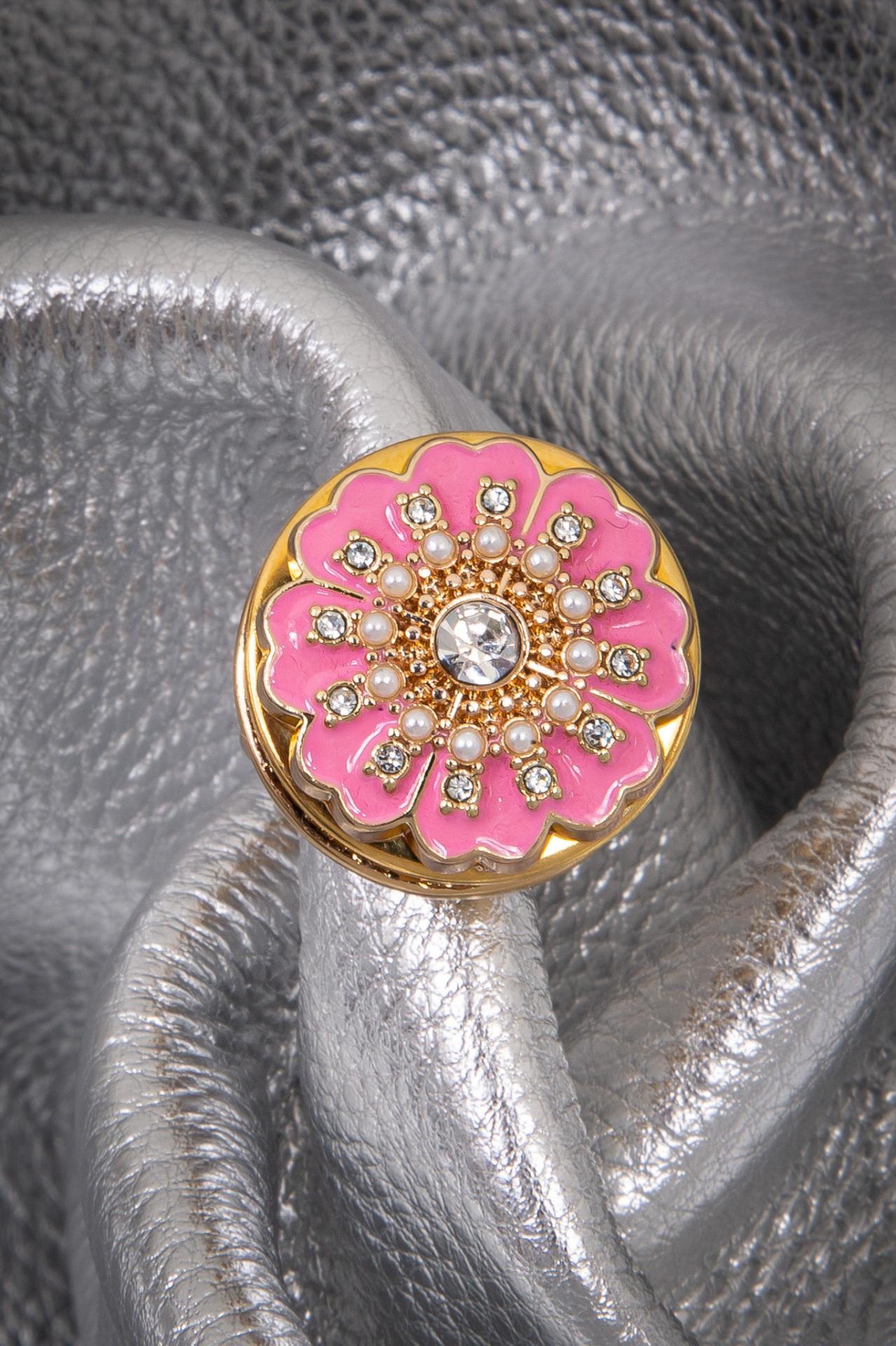Bloom Pop Ring, a sparkling pink enamel flower ring dotted with pearls and crystals, made for garden queens and maximalist hearts.