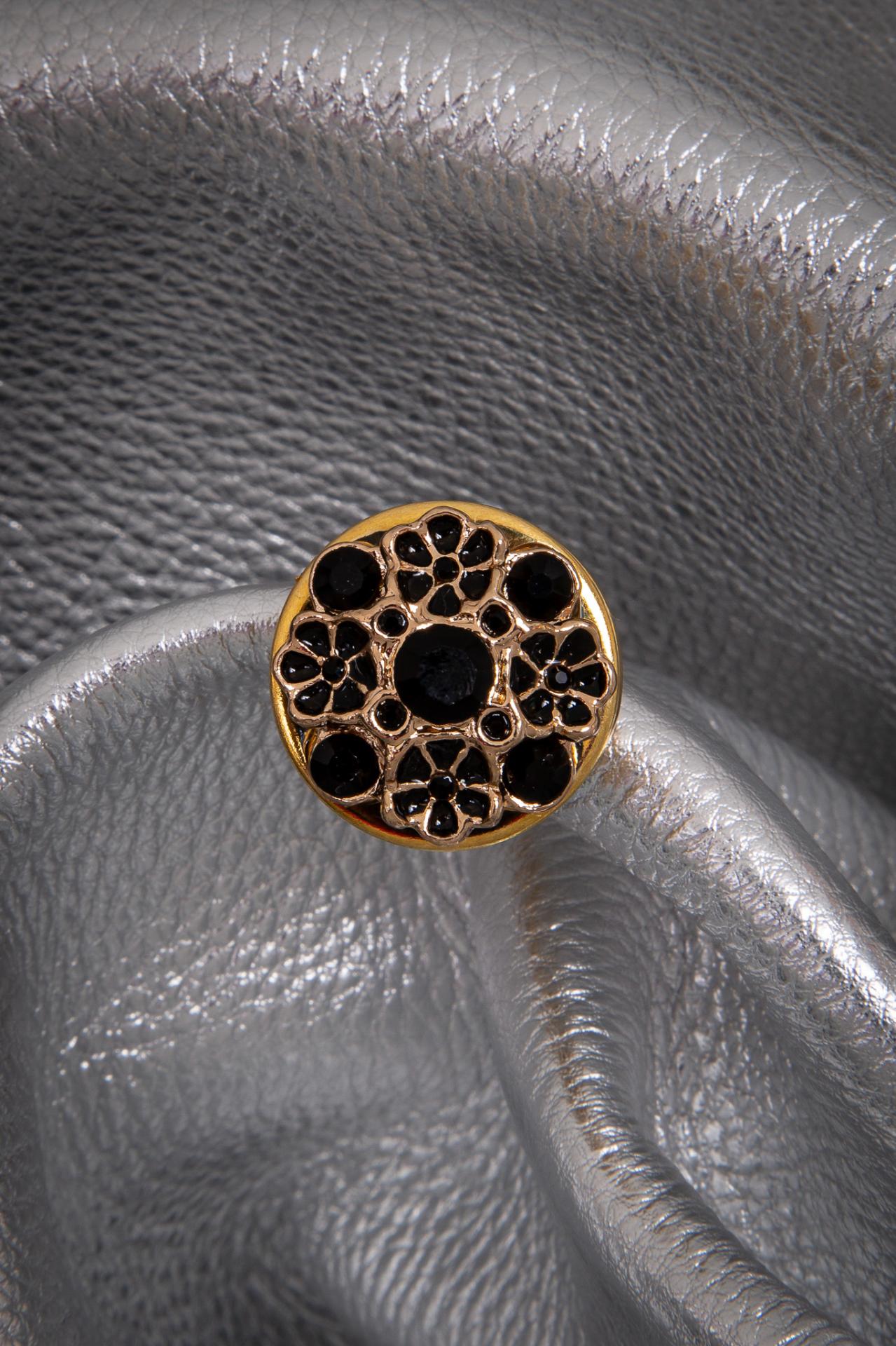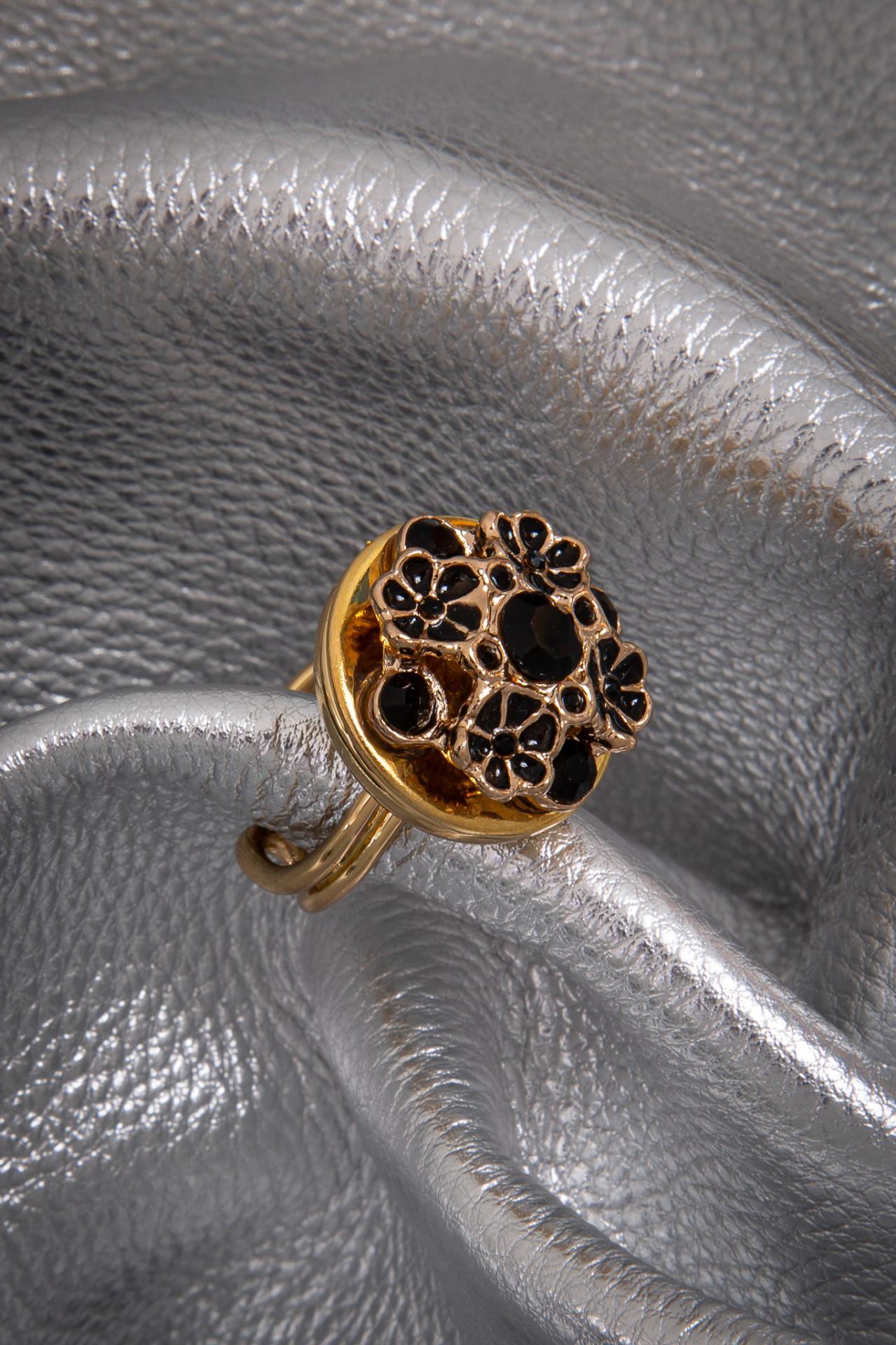 Noir Bloom Ring, black enamel florals and jet crystals bloom boldly on gold in this sculptural statement ring with dark romantic energy.