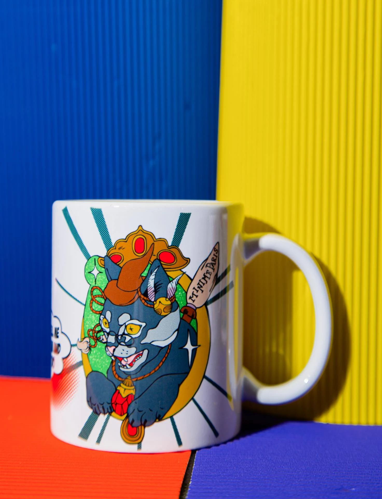 A fierce samurai-style cat with bright colours, bold details, and dynamic MiniMe artwork.