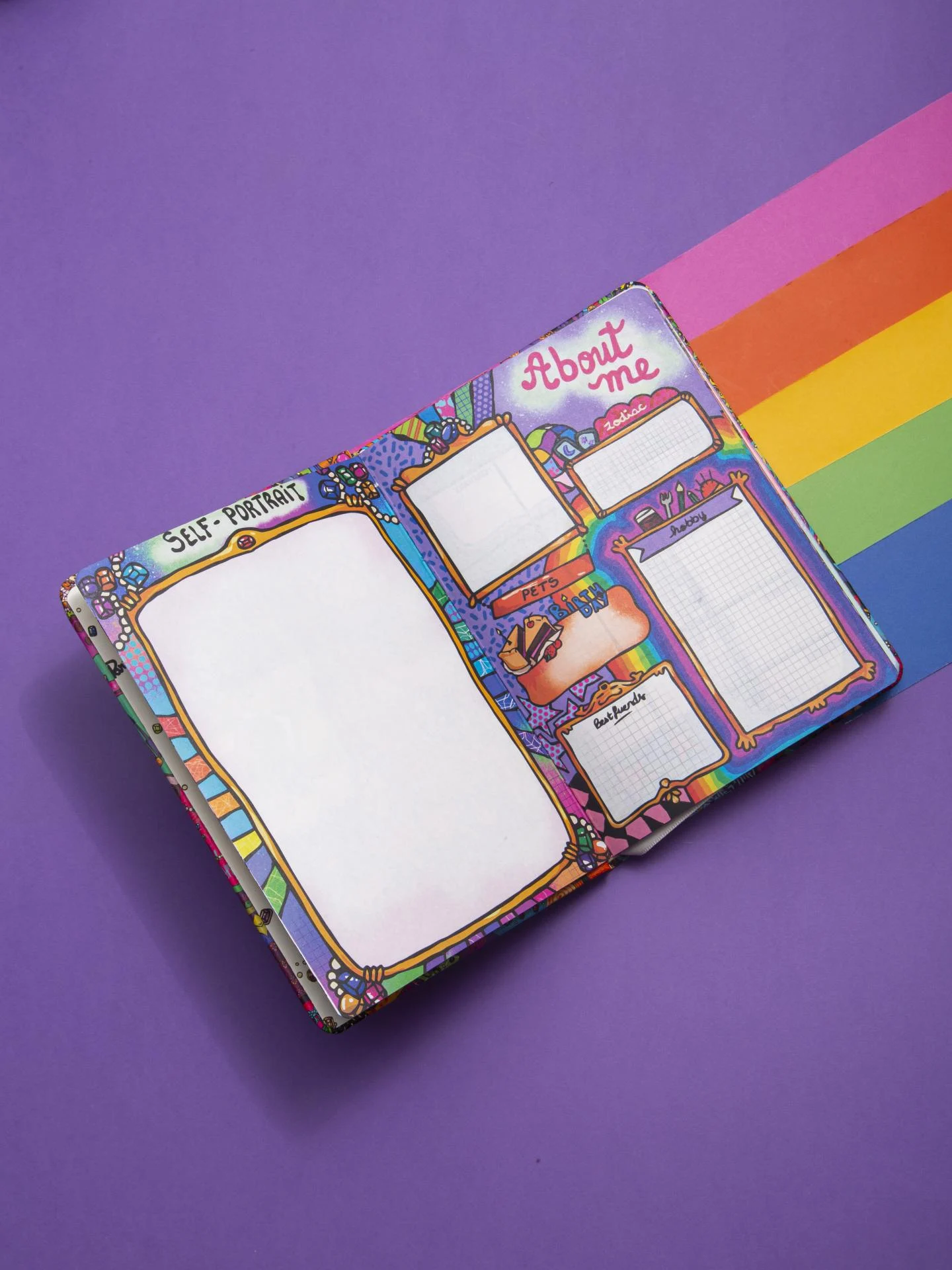A vibrant, fully illustrated MiniMe agenda packed with colours, stickers, and creative spaces to plan your year in style.
