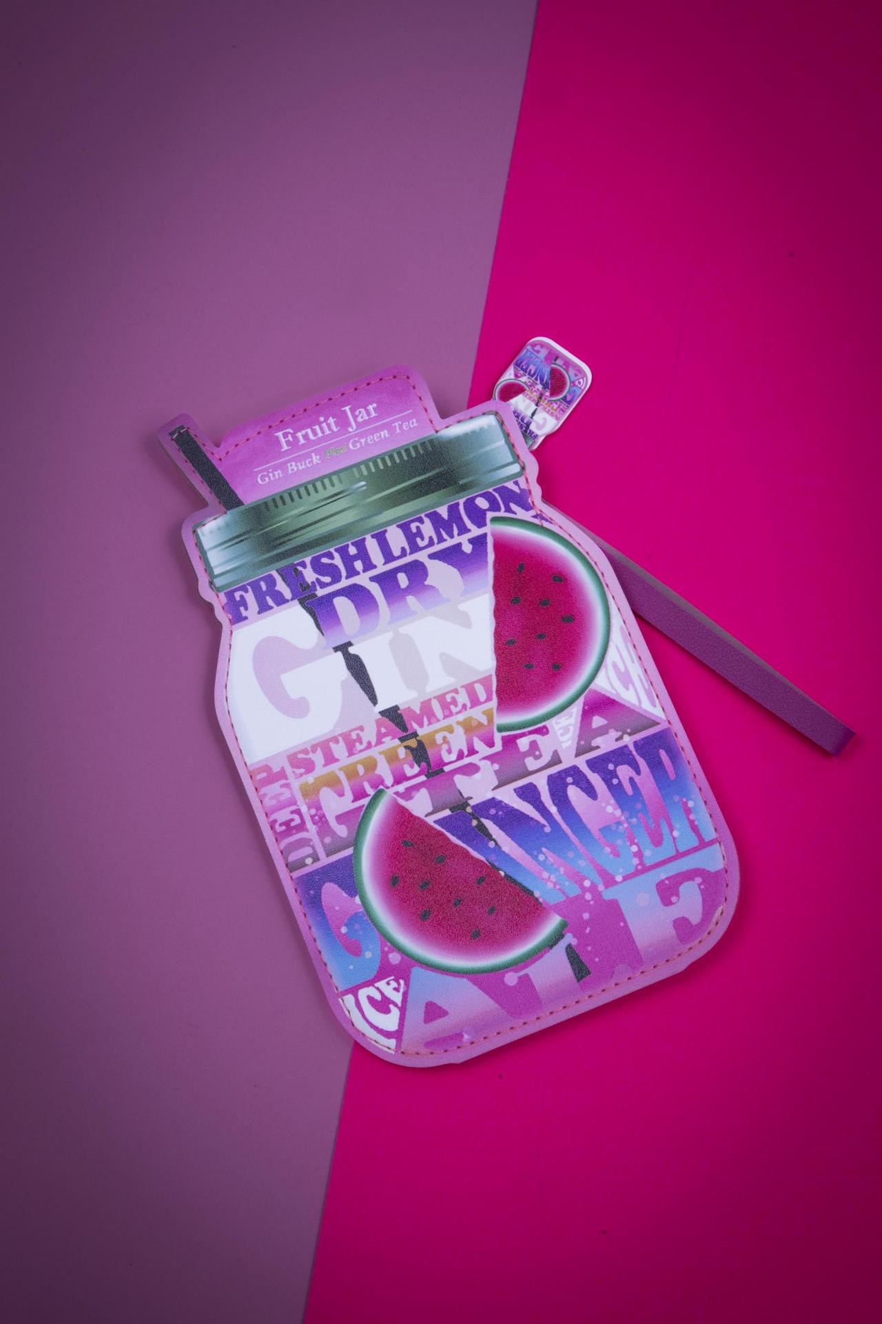 The Gin Watermelon Pouch is a refreshing blend of fashion and fun, designed to look like a vibrant gin cocktail served in a mason jar. With bold typography, watermelon slices, pastel gradients, and a printed jar lid + straw detail, it captures the playful charm of a summer drink, without the melting ice.
