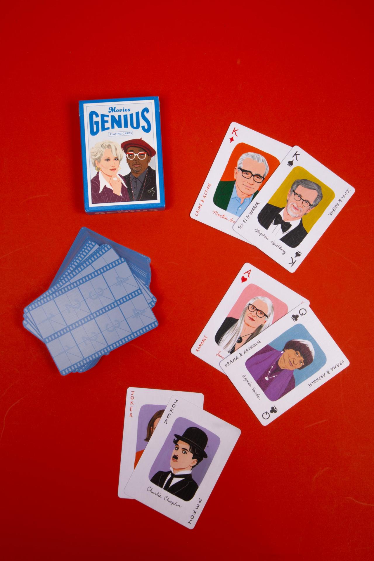 The Movie Genius Playing Cards bring the magic of cinema to your game nights with a vibrant deck inspired by the most influential directors, actors, and visionaries in film history. Each card showcases an iconic figure, illustrated in expressive, contemporary style, to celebrate their contribution to storytelling, culture, and the art of filmmaking.