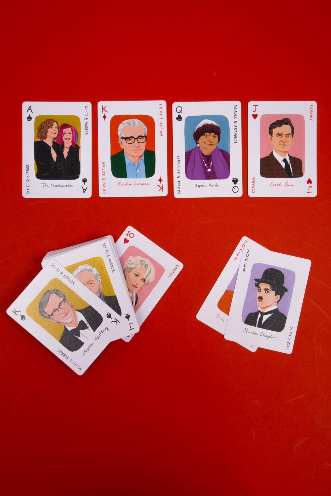 From cult directors to Hollywood legends, every card is filled with personality, color, and cinematic flair. Ideal for card games, themed gifts, or as a decorative collectible, this deck combines playfulness with striking design.