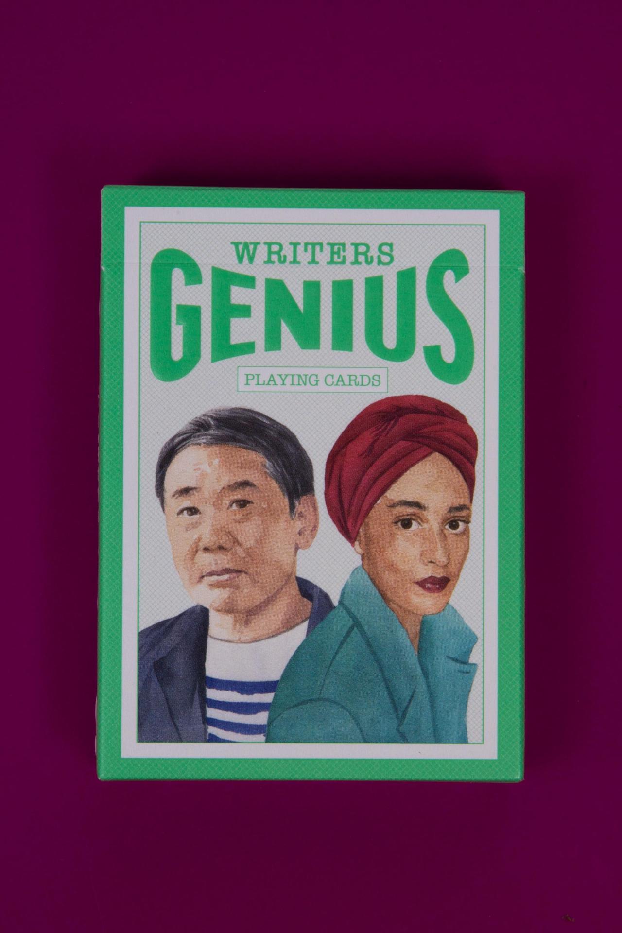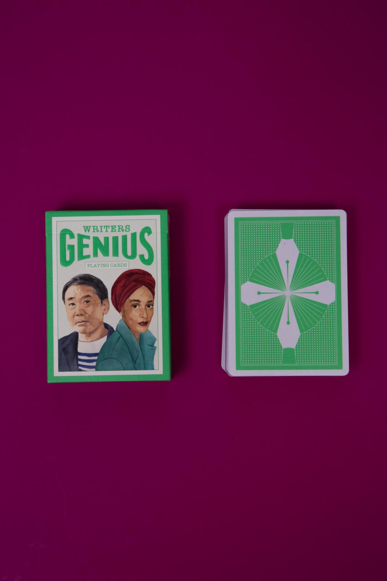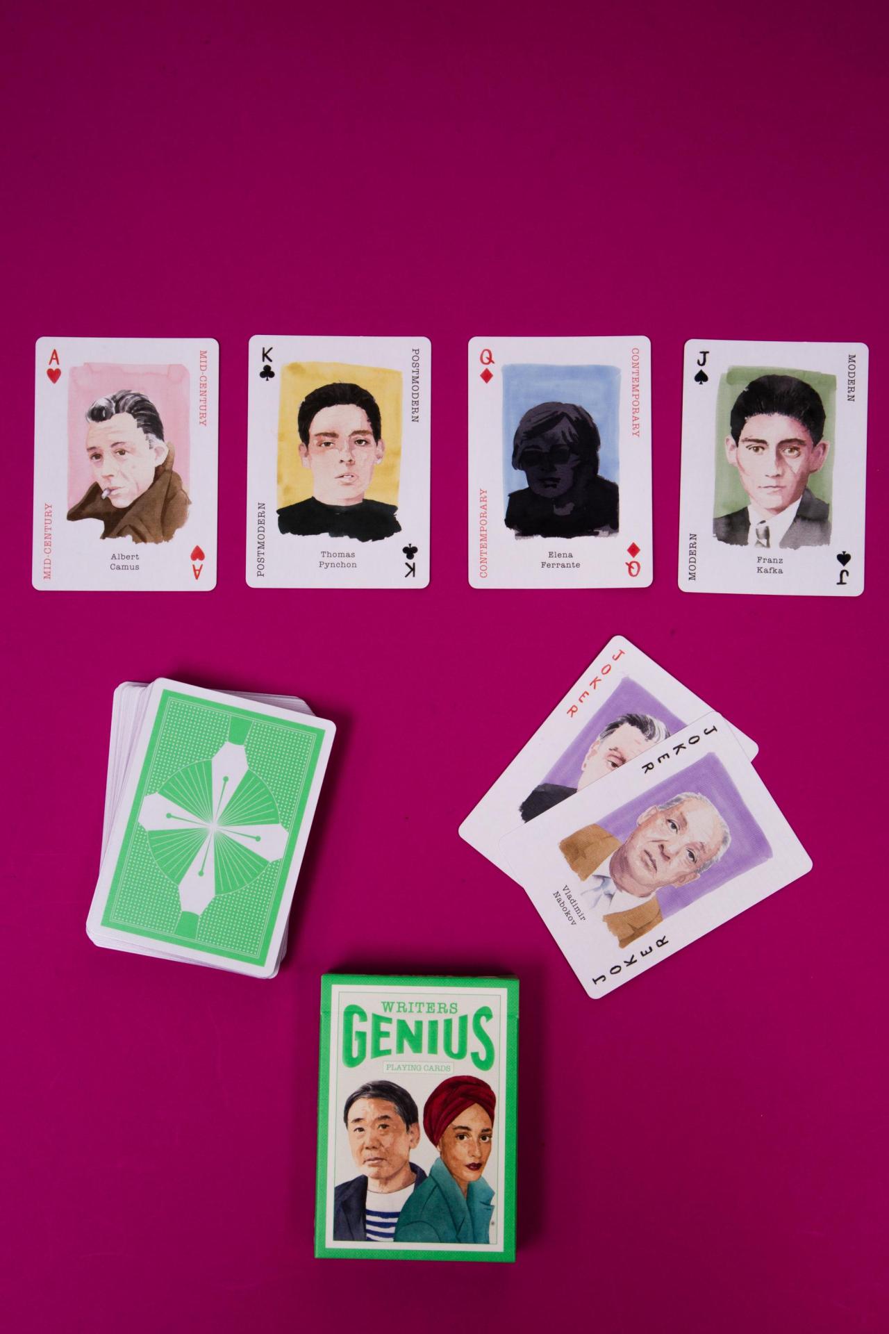 A literary-themed deck of playing cards featuring iconic writers illustrated in bold, artistic style, perfect for book lovers, creatives, and collectors.