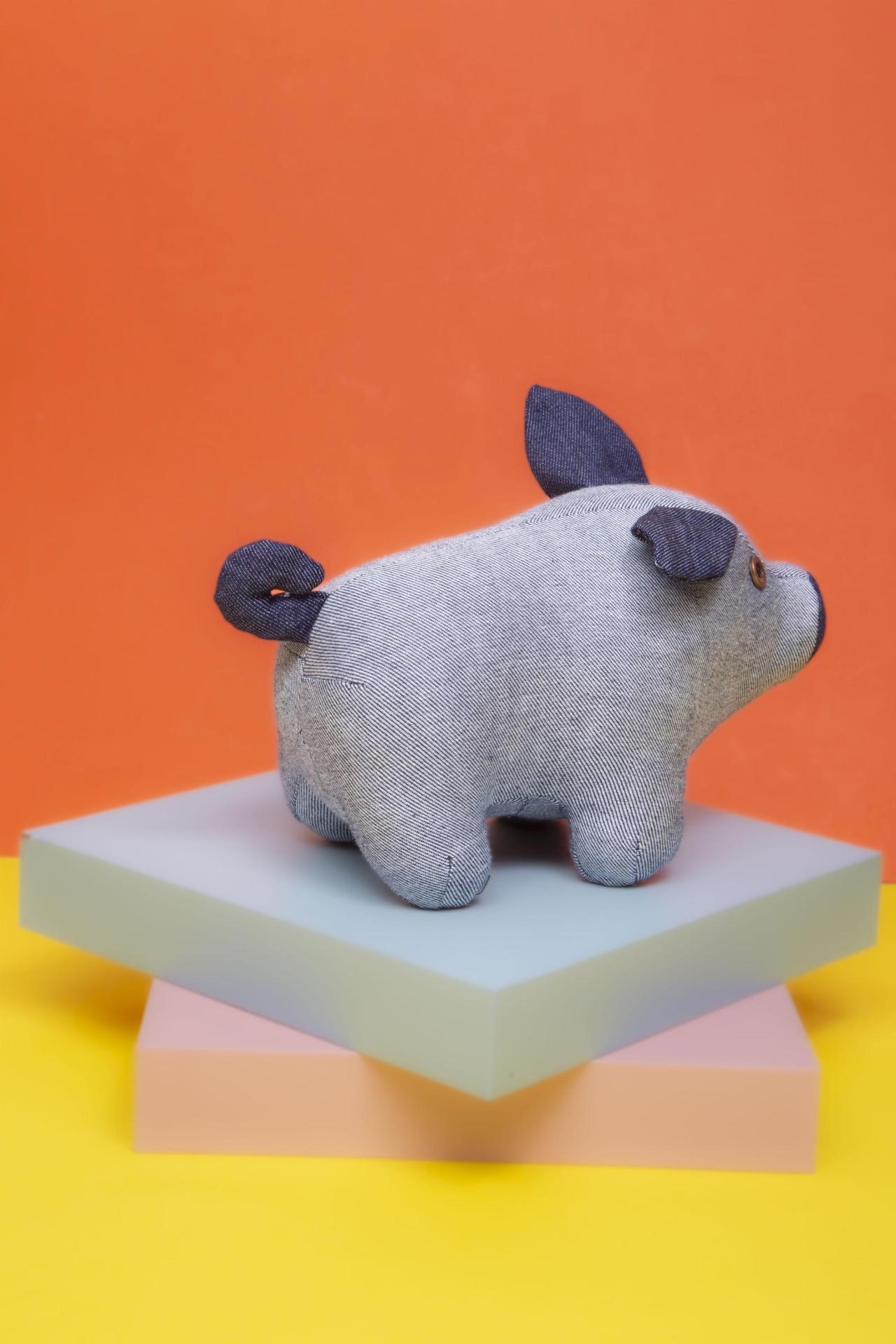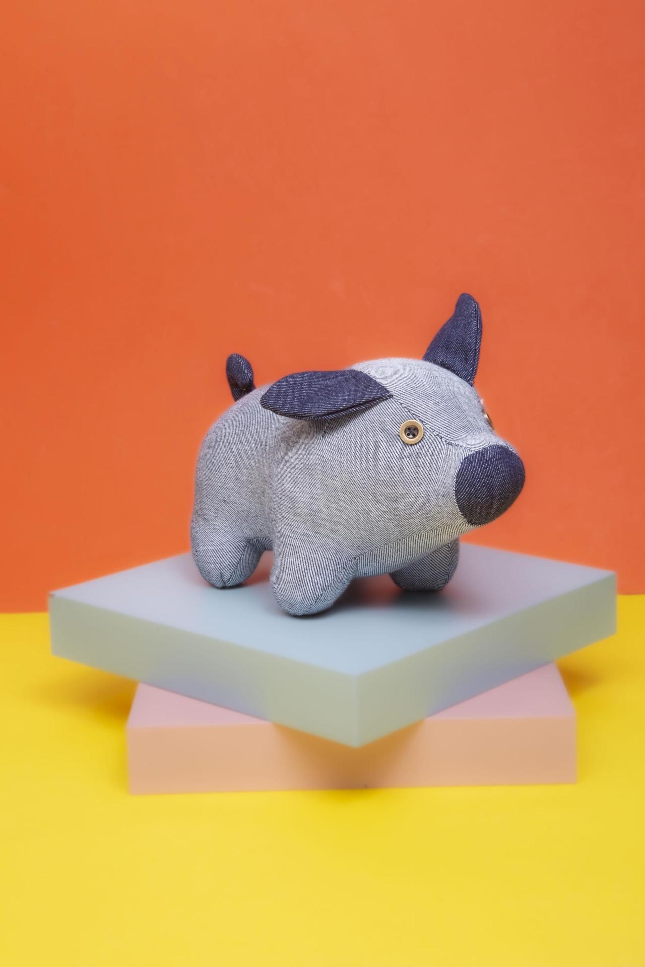A sweet Cute Pig plush crafted in soft denim-style fabric with button eyes and a round snout. Minimal, modern, and irresistibly charming.