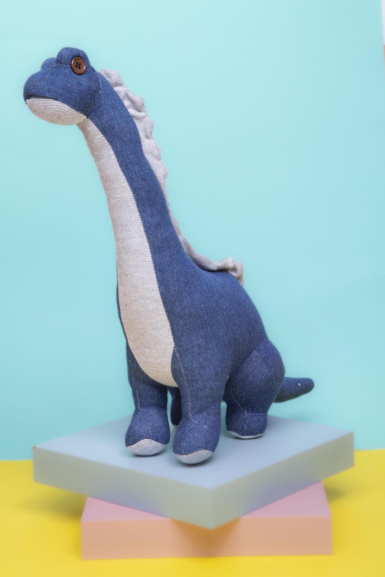 A charming Dinobear plush combining dino shape with soft, denim-style fabrics. Minimalist, modern, and irresistibly cute, a perfect collectable for kids and adults alike.