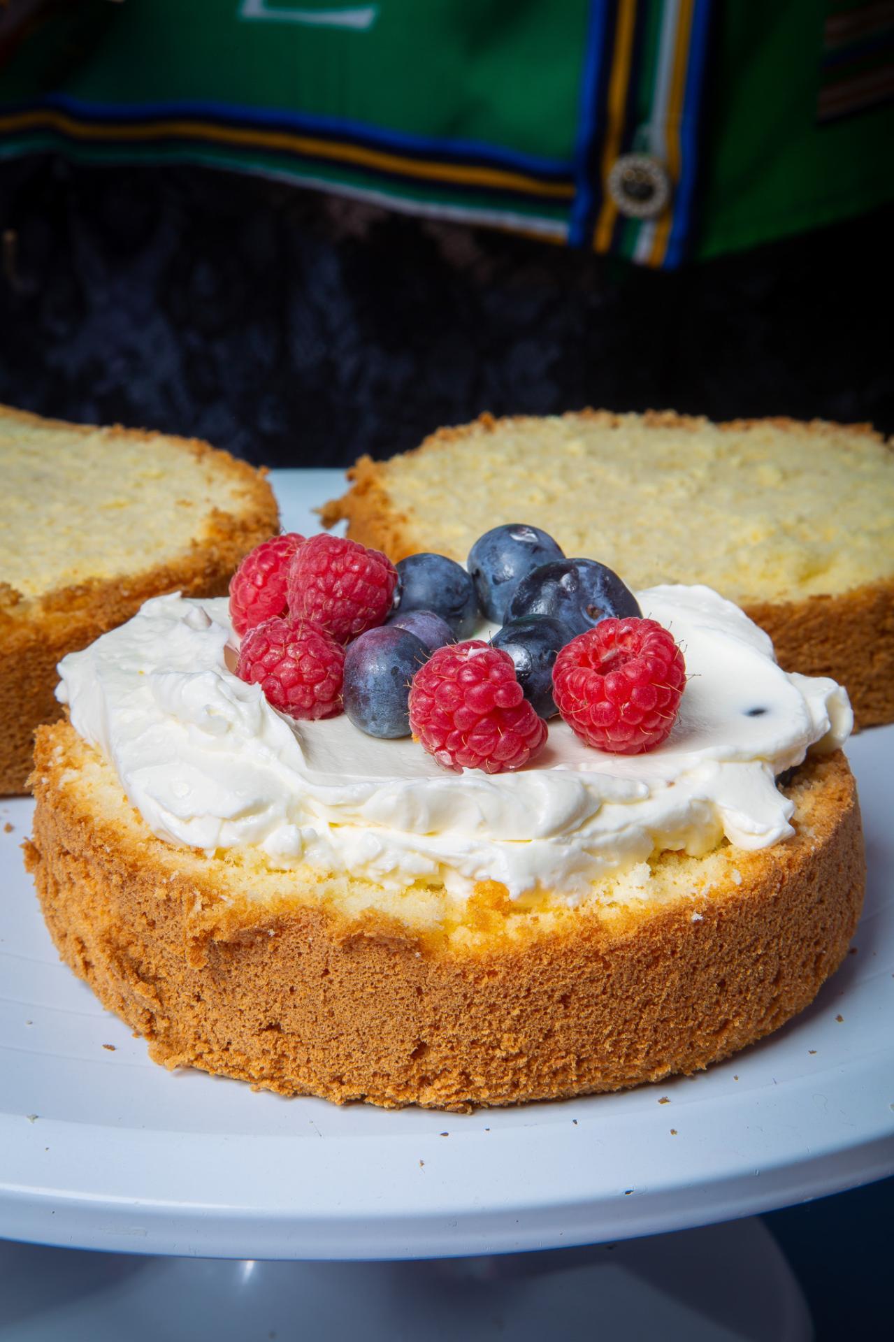 • Open your cake and add the fresh fruits of your choice to create a delicious and colorful filling.