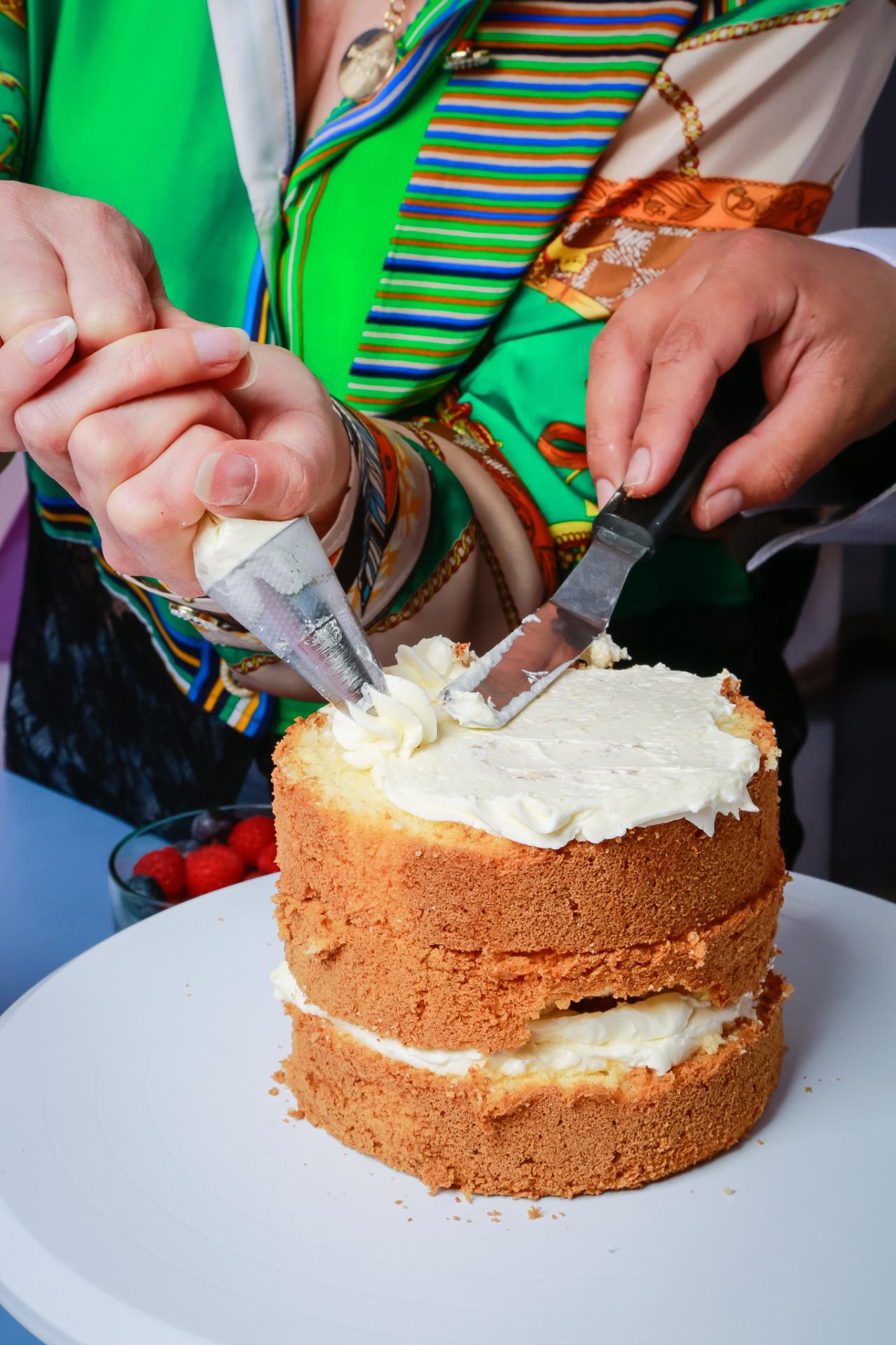 • Apply a whipped cream, then a smooth second layer of butter cream in the color of your choice.