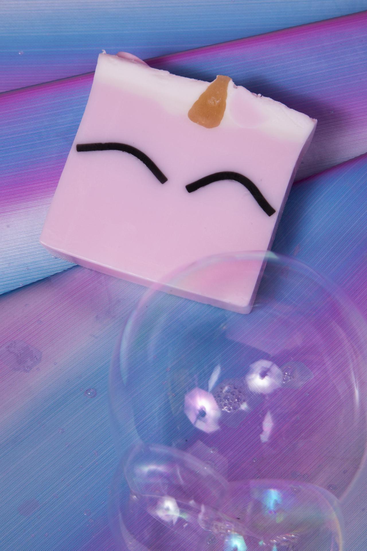 Une adorable boule de bain licorne carrée qui pétille, mousse et remplit votre bain de bulles pastel et de douceur enchantée.