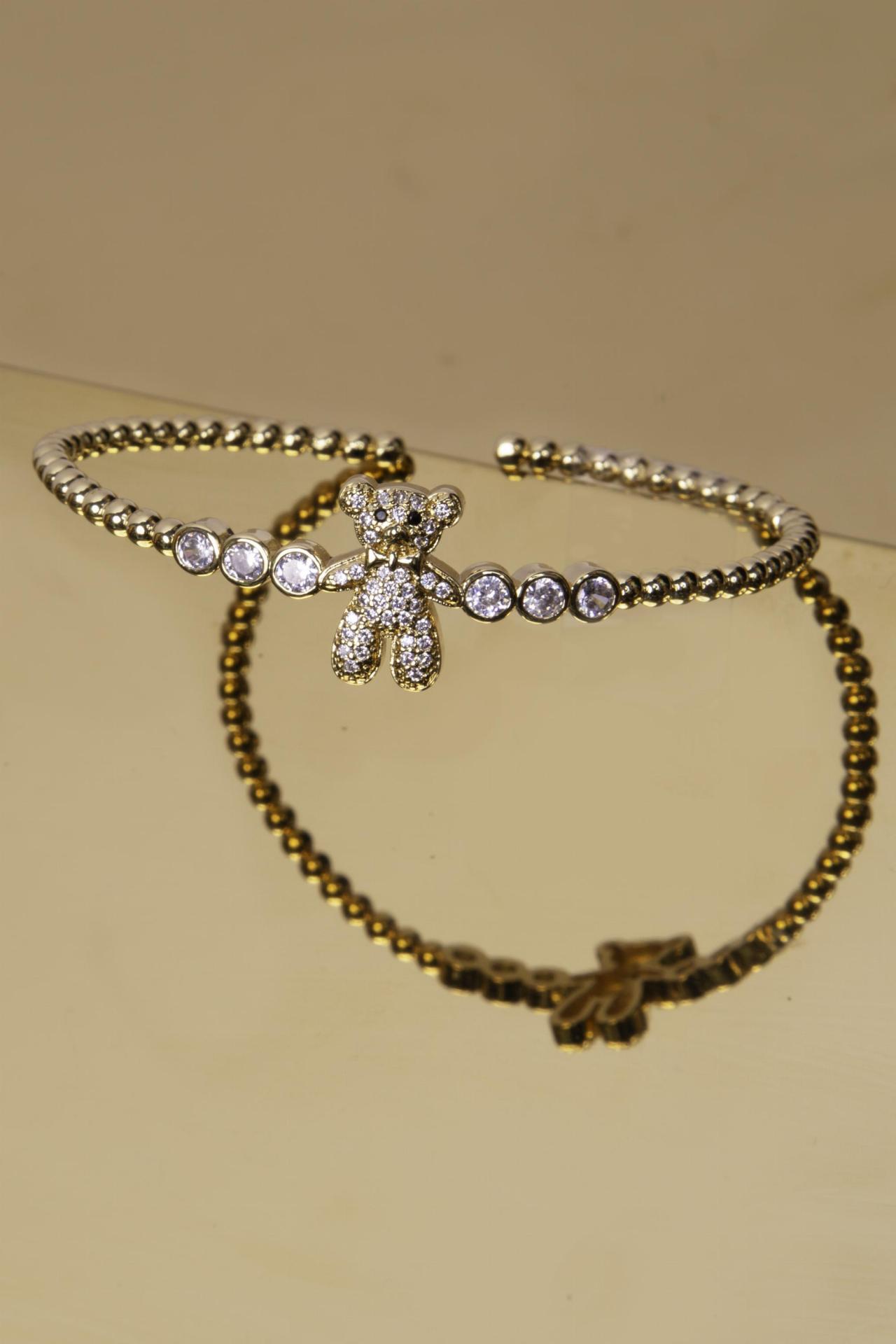 Bracelet Ours Cristal – Métal Poli & Éclat de Cristaux Clairs