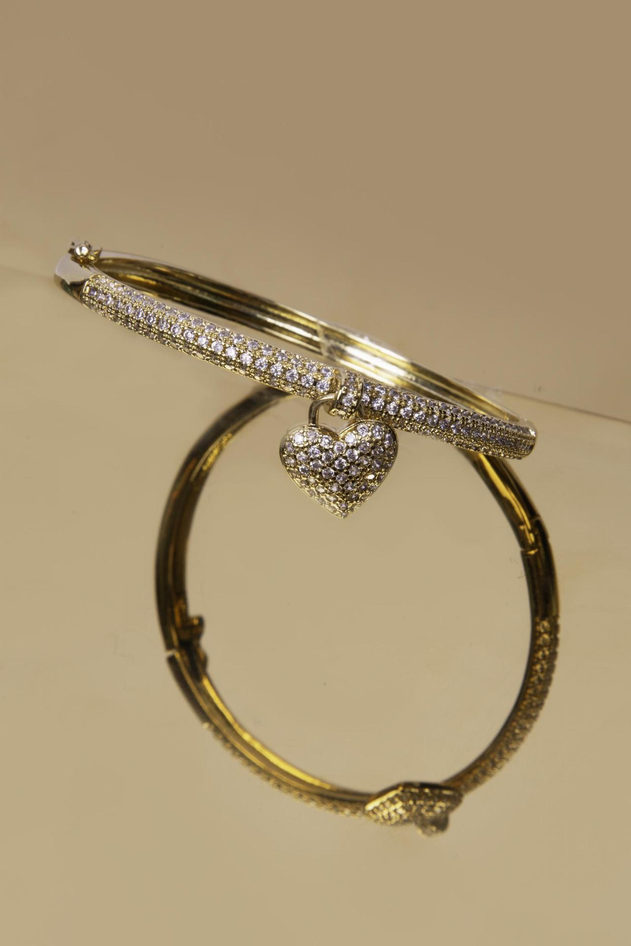 Matériaux : Métal doré poli, micro-strass pavés, charm cœur en cristal, jonc à charnière