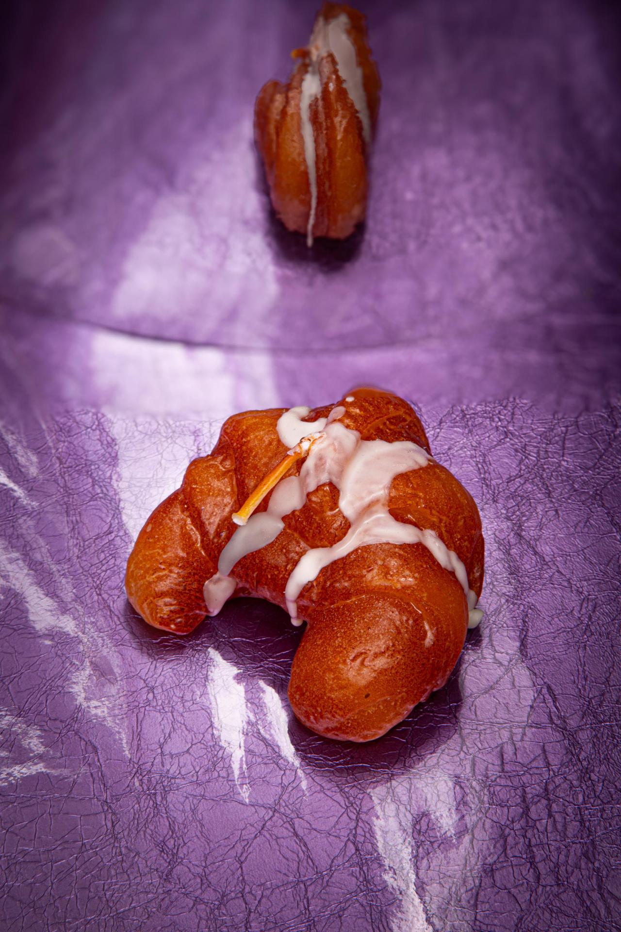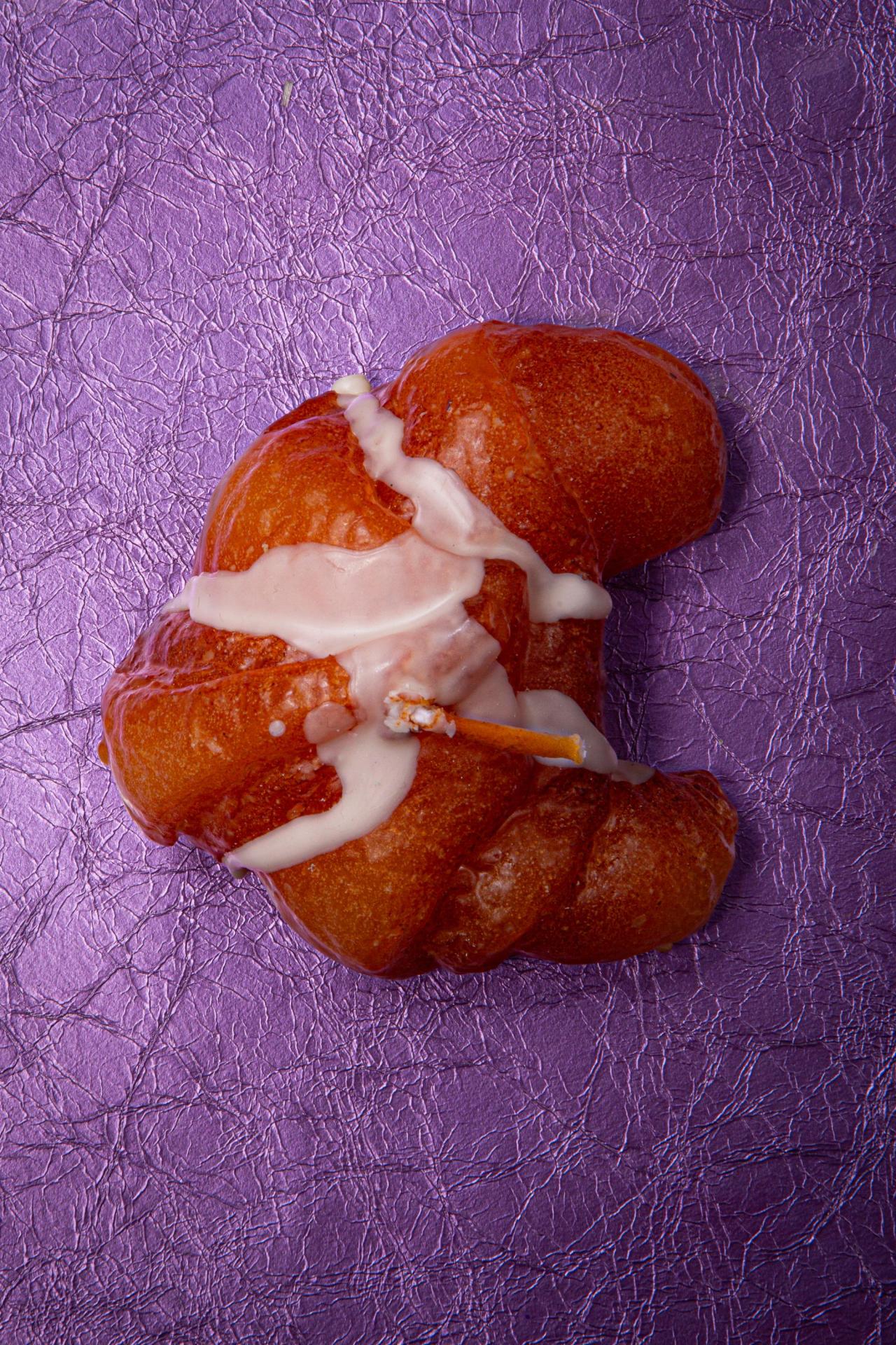 Une bougie ultra réaliste en forme de croissant doré, décorée d’un filet de “glaçage”, aussi amusante que décorative.