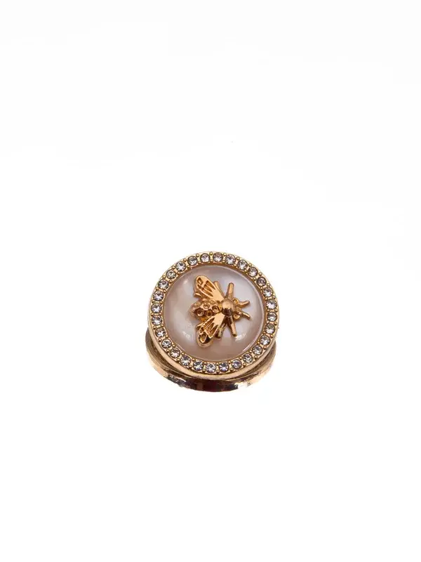 Un bouton rond enchanteur présentant une abeille dorée posée sur une base en émail nacré, entourée de mini accents de cristal. Un design à la fois féerique, élégant et symbolique.