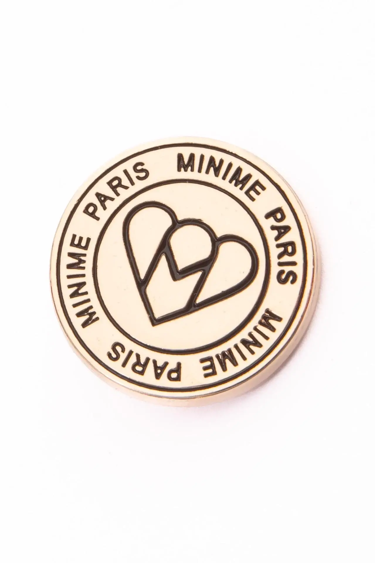 Un bouton rond épuré arborant le logo double cœur de MiniMe Paris et sa signature emblématique. Moderne, minimaliste et résolument iconique.
