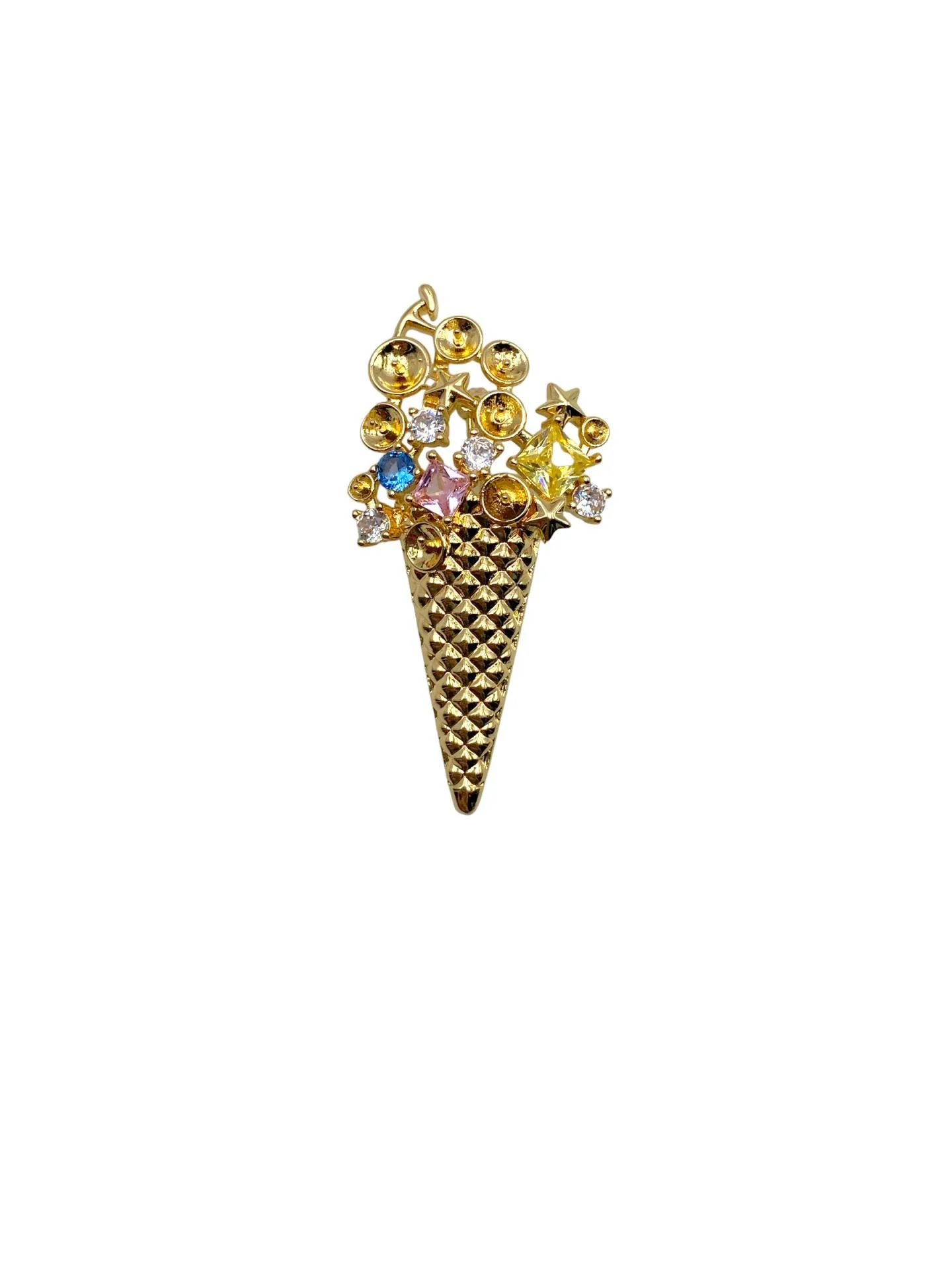 Une broche en forme de glace ornée de cristaux scintillants et de détails étoilés. Un accessoire ludique et féérique au charme cosmique.