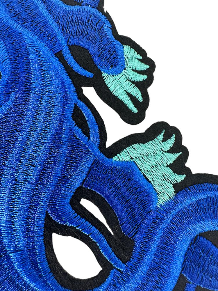 Entrez dans la légende avec l'écusson du dragon du ciel de saphir, un superbe motif brodé représentant un dragon fluide qui fend les nuages dans des tons bleus profonds et des sarcelles glacés. Avec son corps allongé enroulé en vol, ce dragon de style oriental représente les éléments célestes du vent, de l'eau et de la sagesse, réunis en un puissant symbole de grâce et d'énergie.