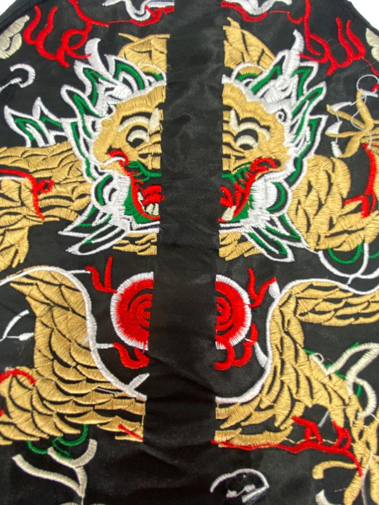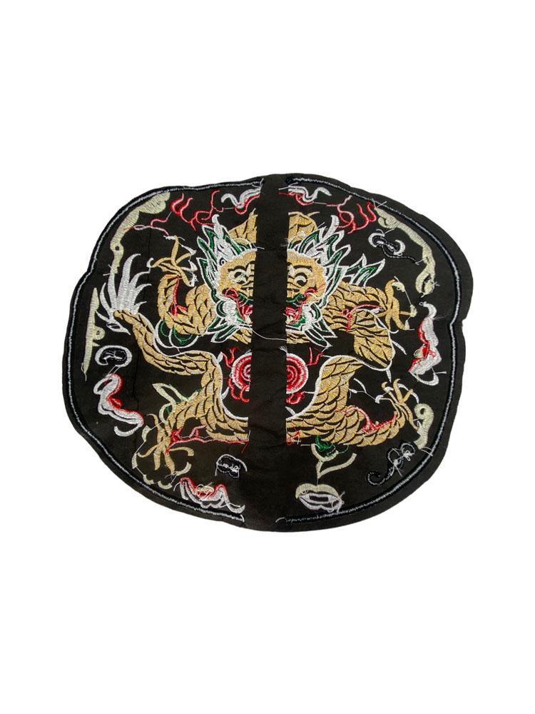 Écusson brodé représentant deux dragons dorés autour d'une perle centrale