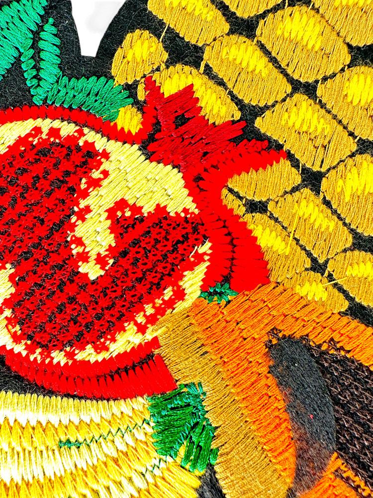 Broderie détaillée d'ananas, de papaye, de banane, de grenade et d'agrumes.