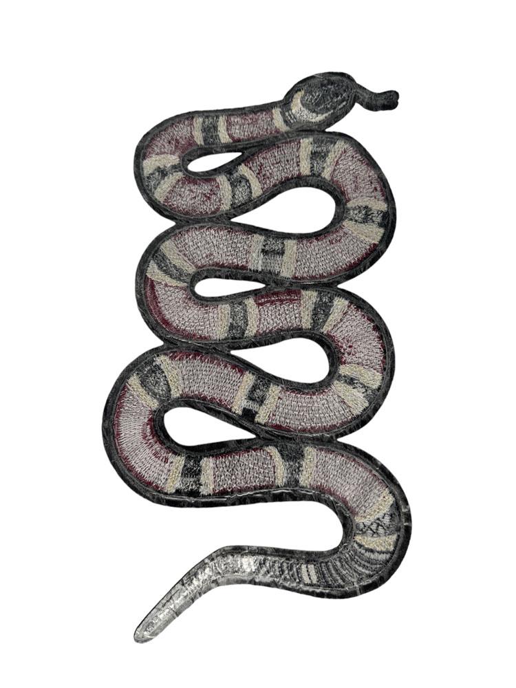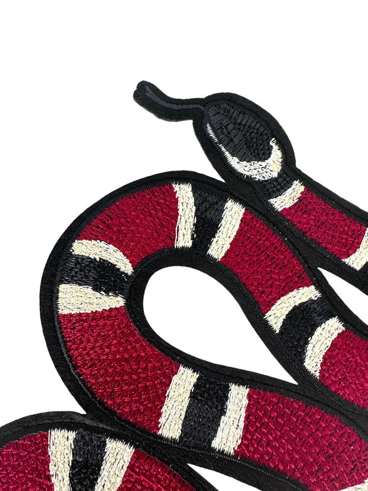 Écusson brodé représentant un serpent rouge audacieux avec des bandes noires et blanches
