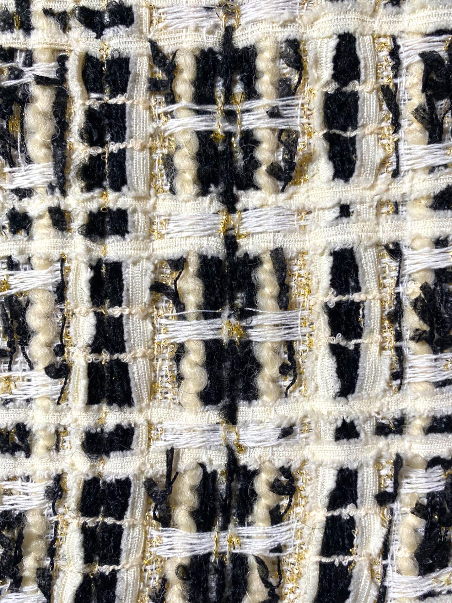 Tweed structuré ivoire et noir avec un motif à carreaux classique
