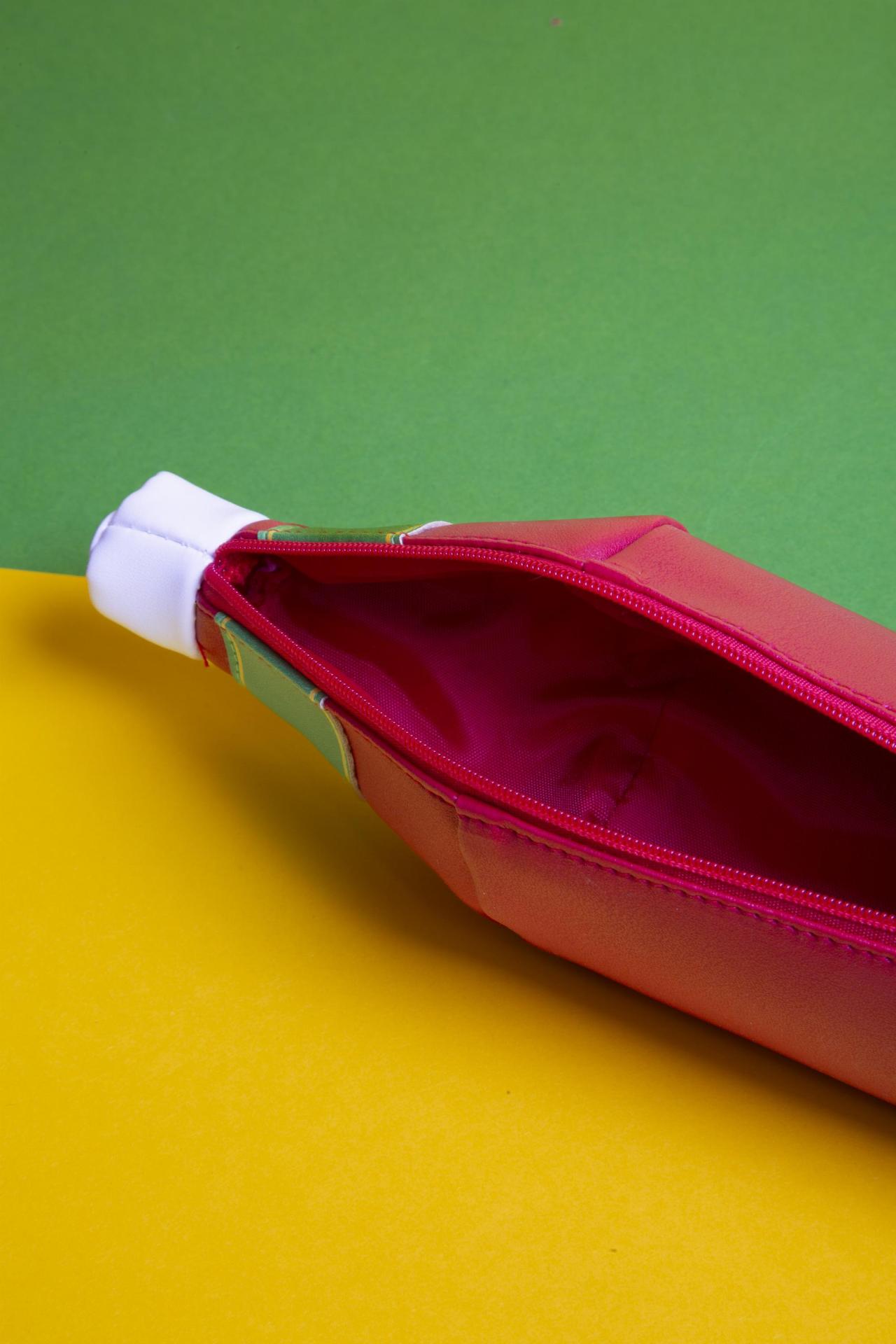 Une pochette originale en forme de bouteille de sauce piquante—audacieuse, fun et parfaite pour stylos, maquillage ou essentiels du quotidien.