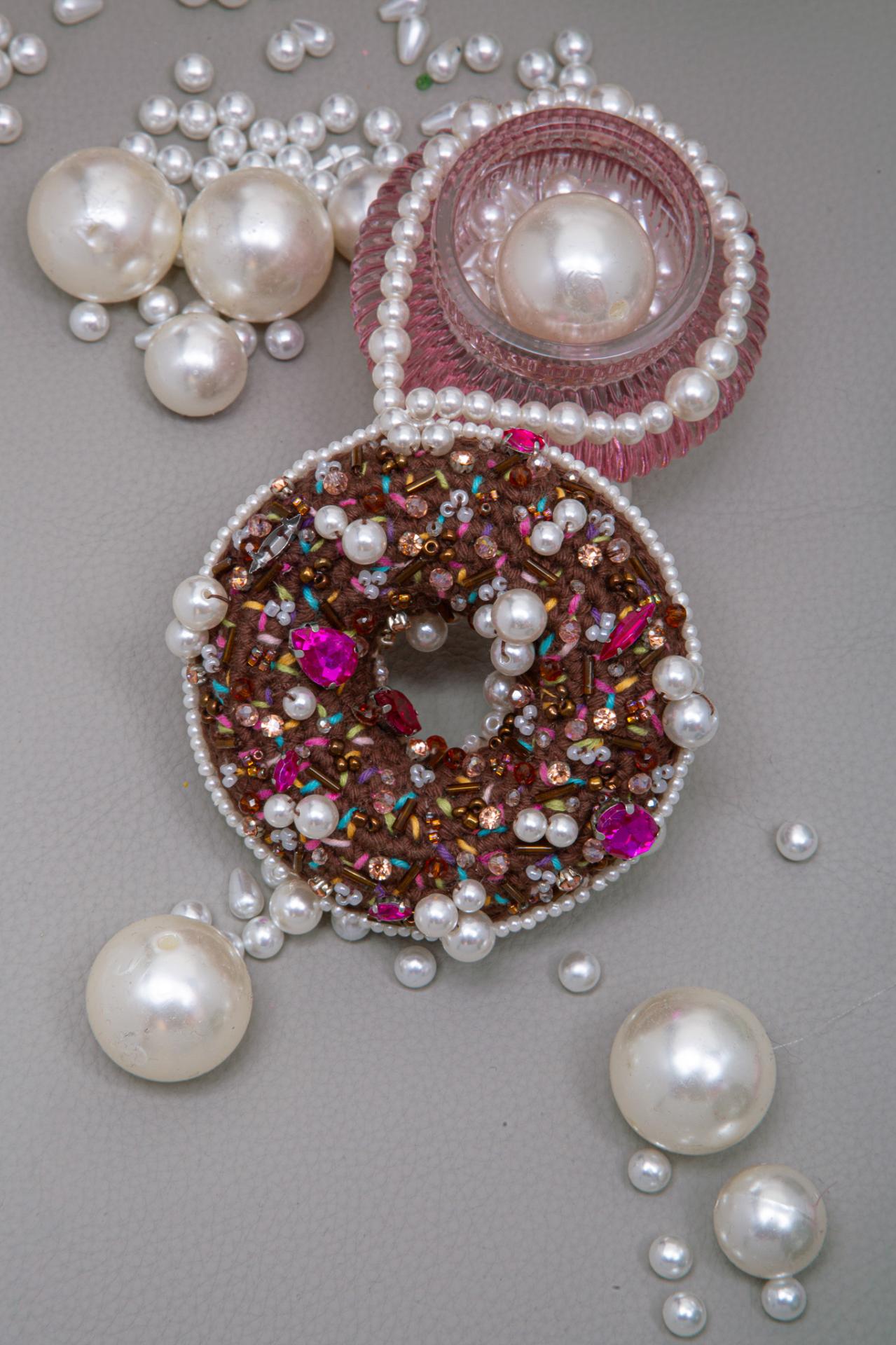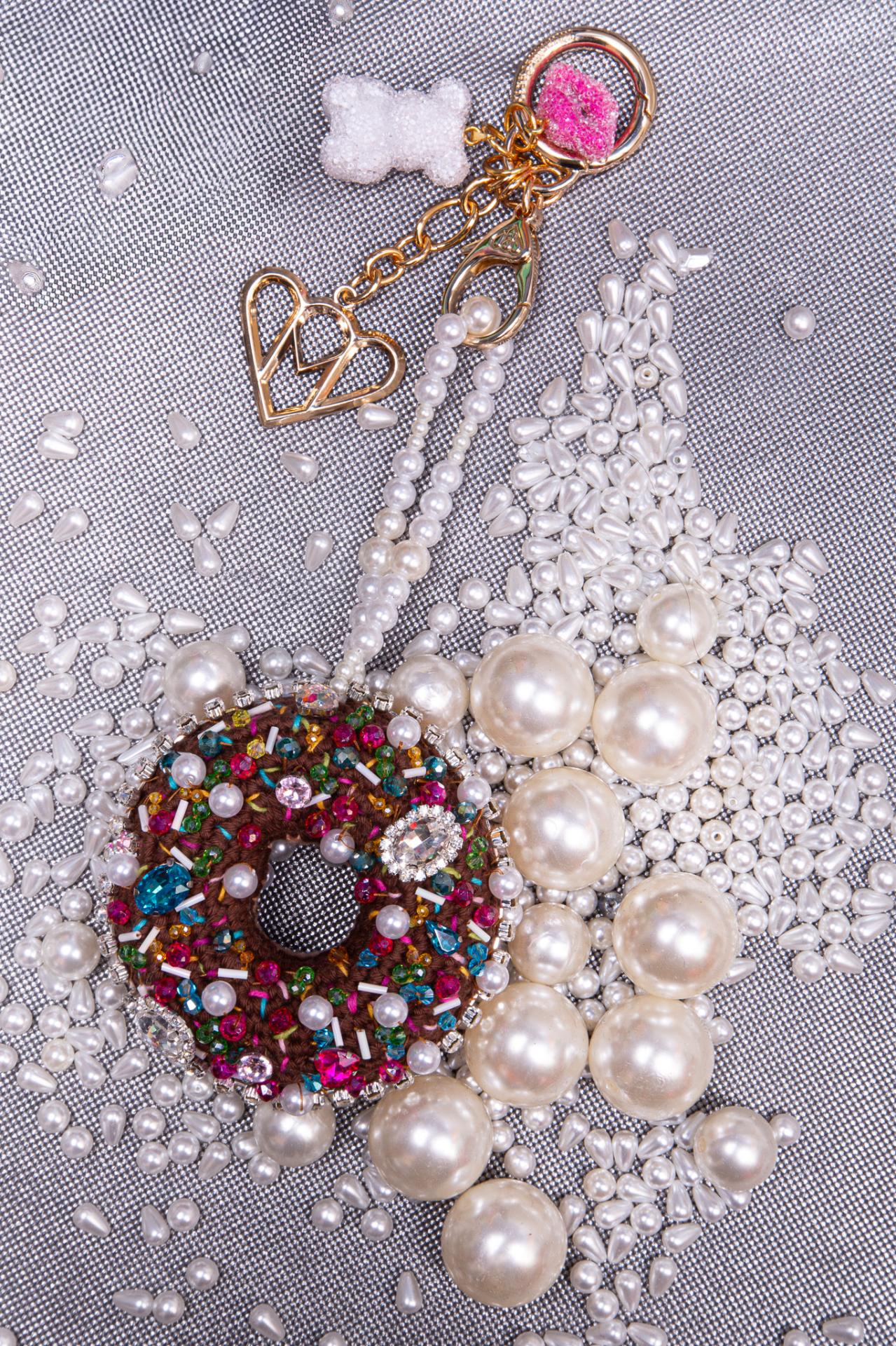 Un charm donut chocolat orné de gemmes, de perles et d’éclat, Midnight Glaze est un dessert plein de drama.