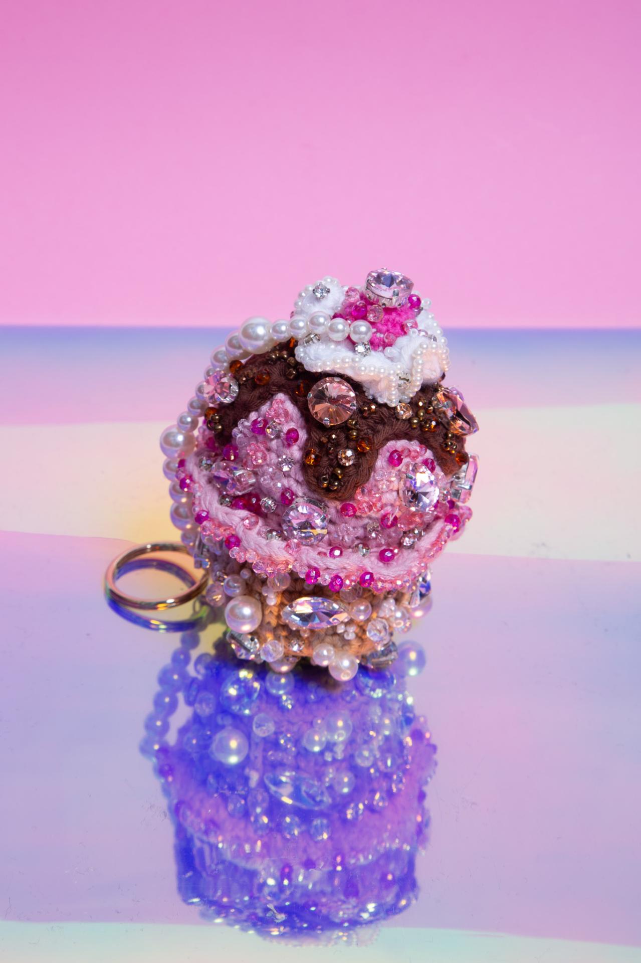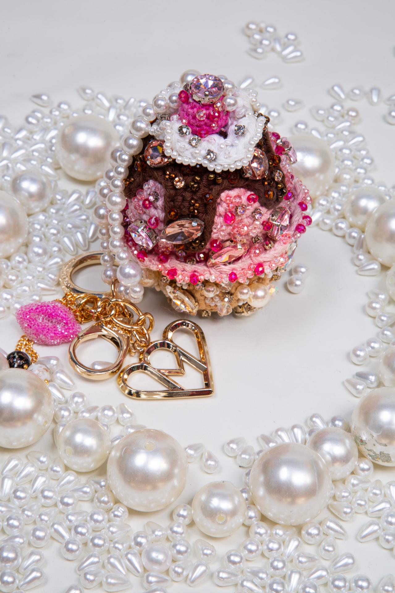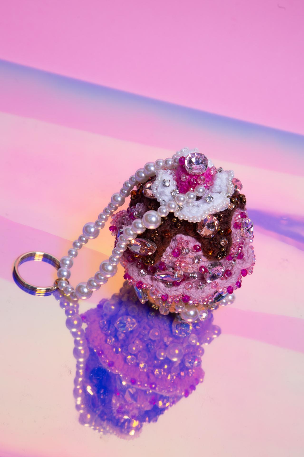 Un charm œuf précieux, unique en son genre, orné de perles, d’éclats et d’un petit ourson rose surprise, Sugar Royale est une véritable royauté pastel.